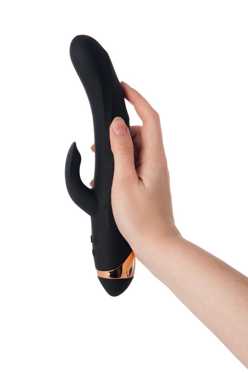 Чёрный вибратор WANAME Thunder с клиторальным отростком - 24,2 см.