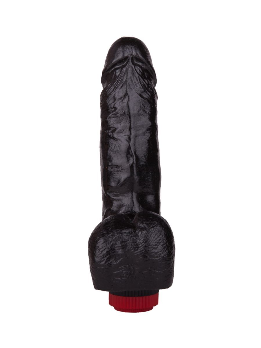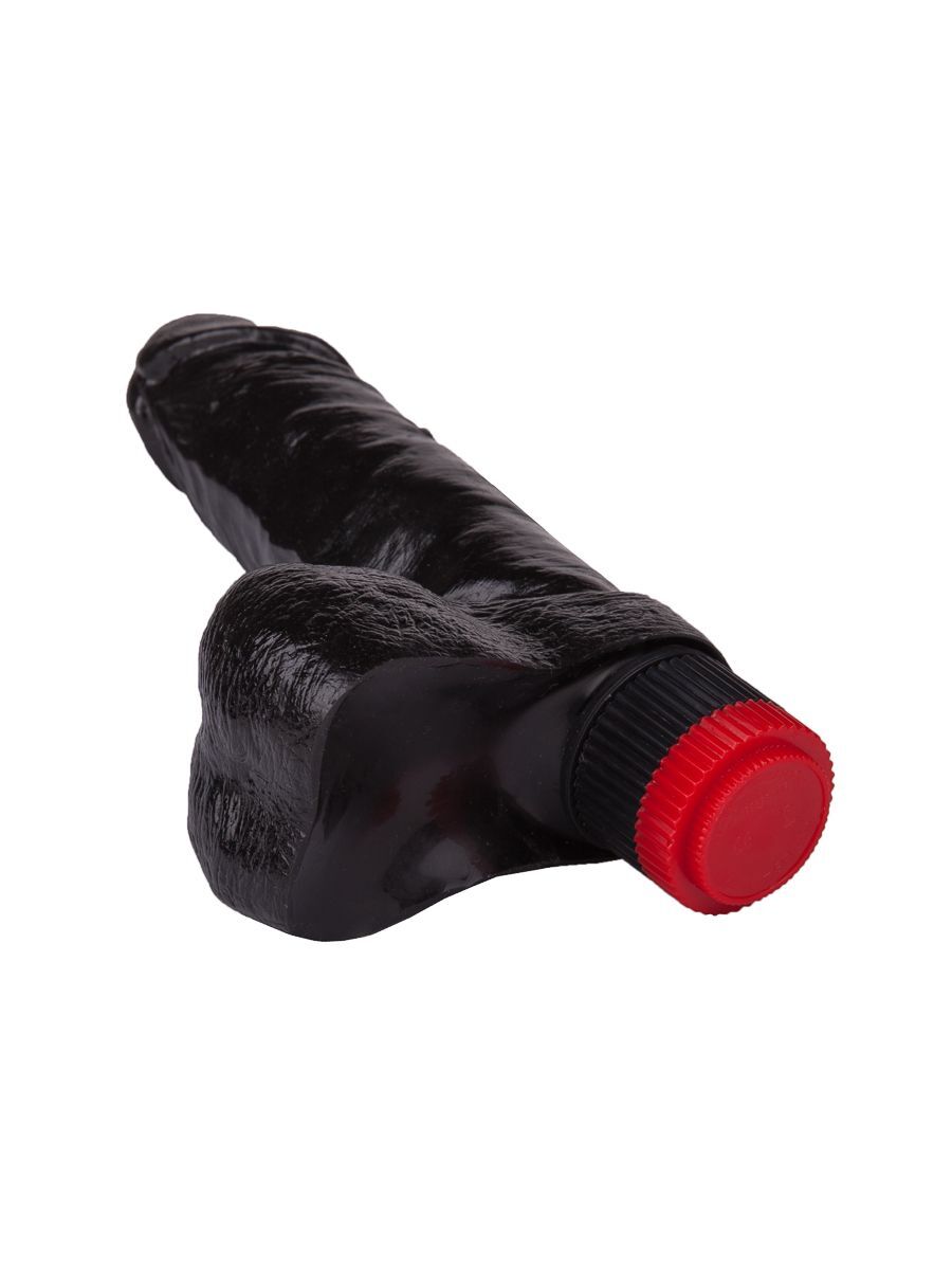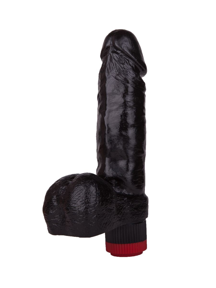 Чёрный виброфаллос с пышной мошонкой - 16 см.