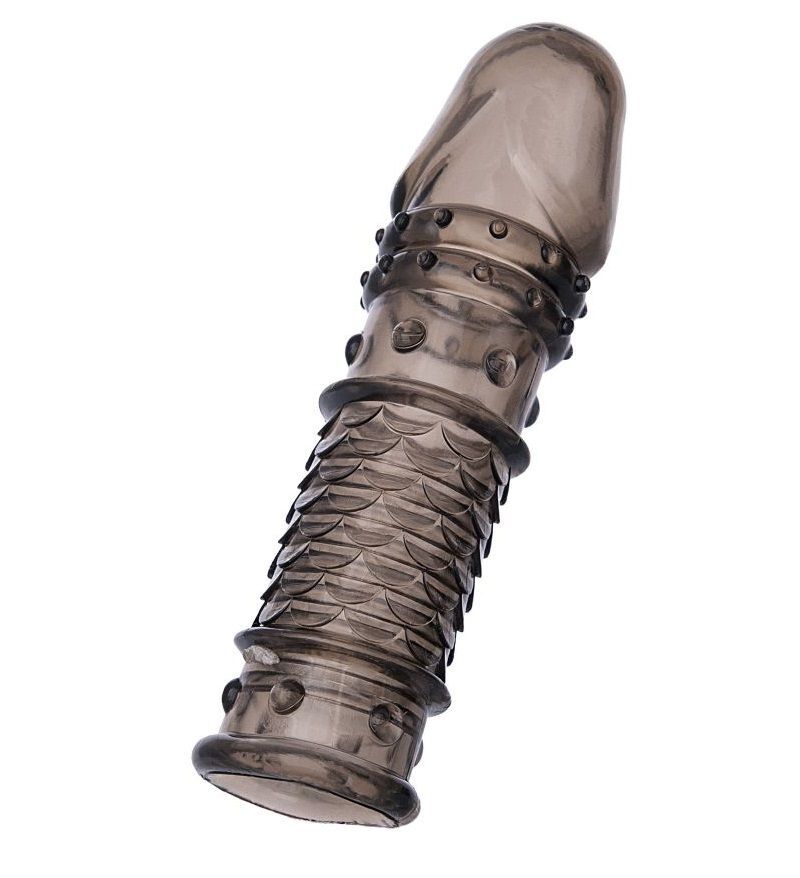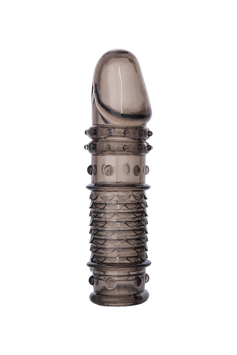 Дымчатая закрытая насадка ToyFa XLover с чешуйками и пупырышками - 13,5 см.