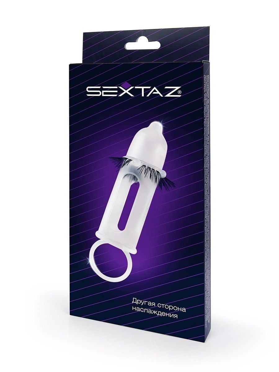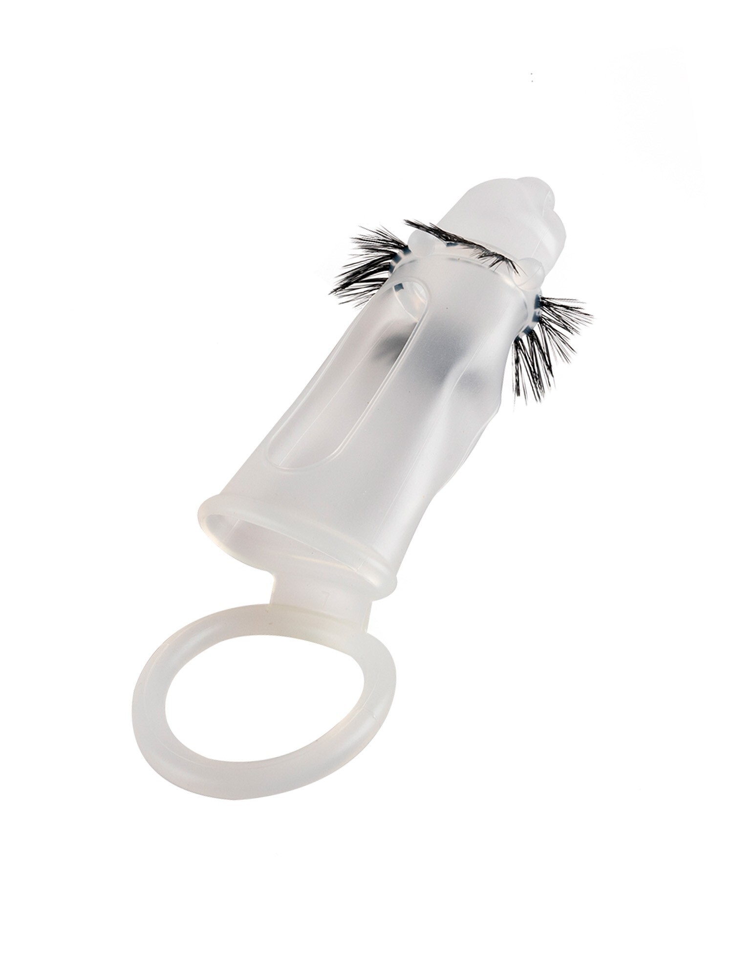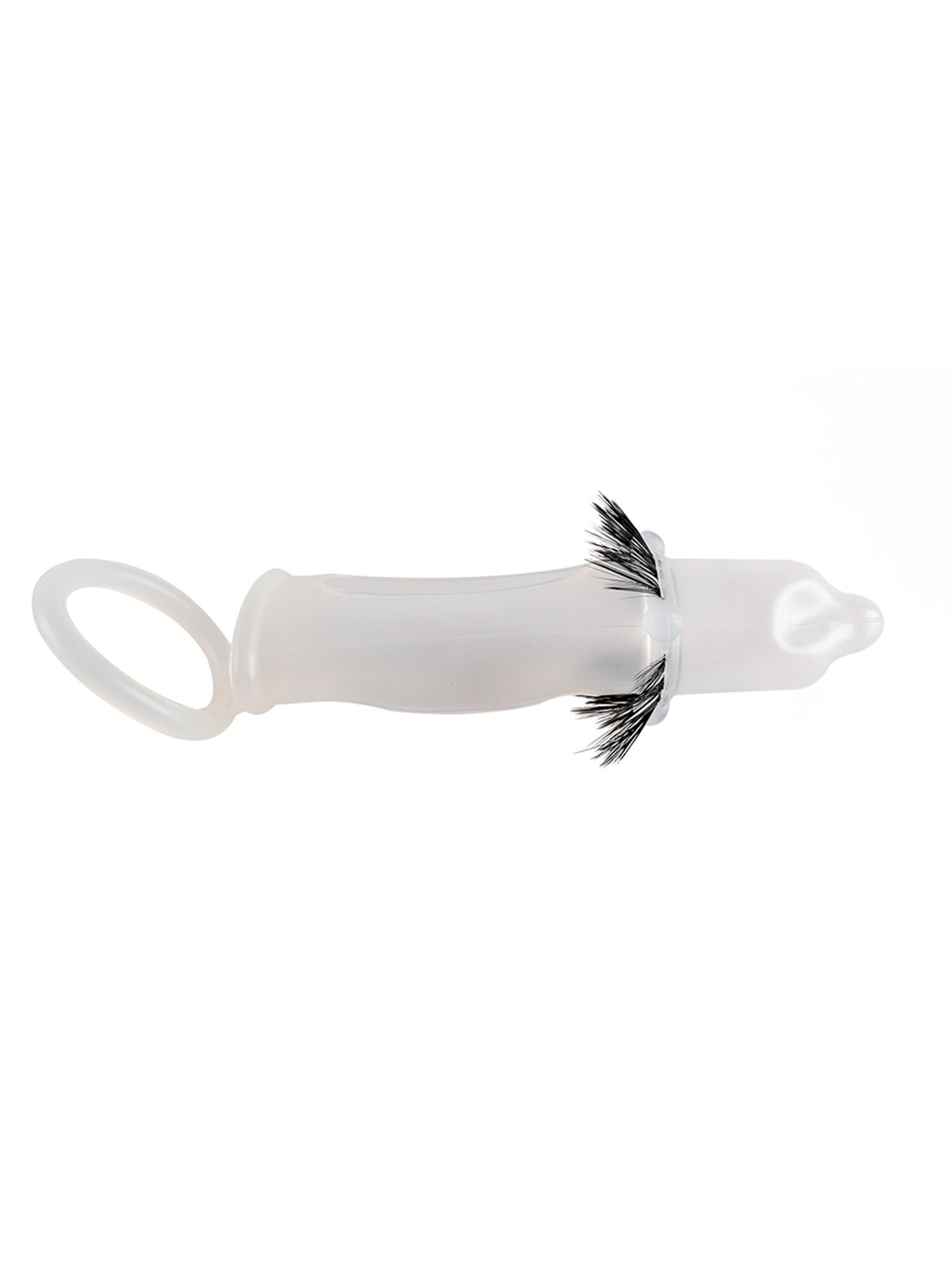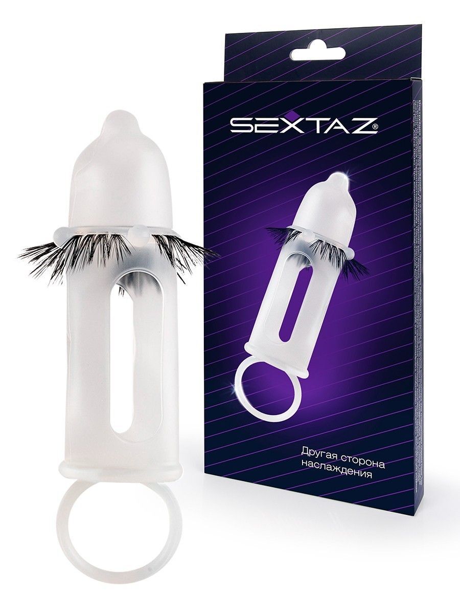 Эластичная насадка на пенис с подхватом мошонки и стимулирующими «ресничками»