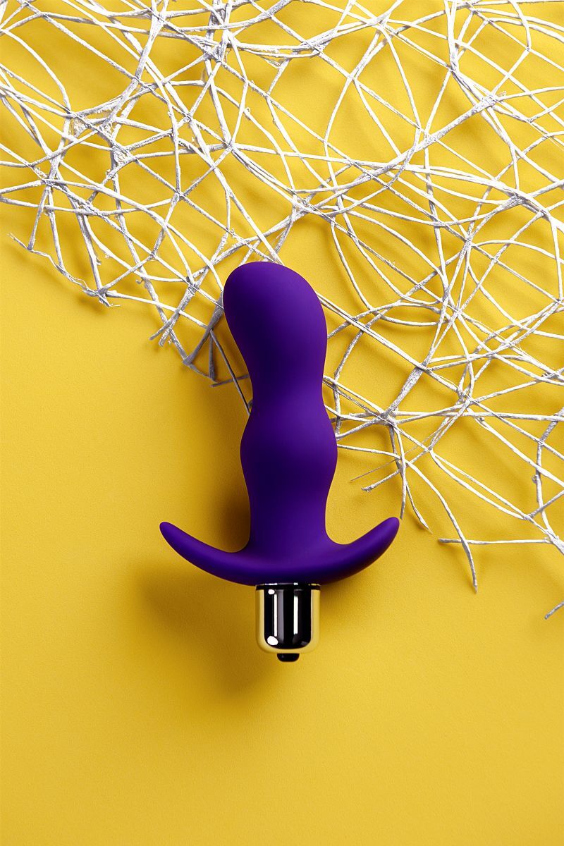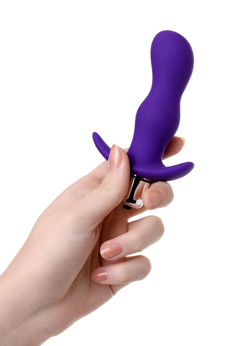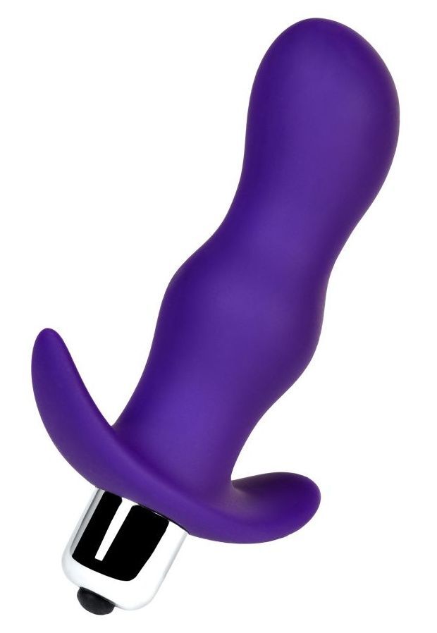 Фиолетовая изогнутая анальная вибропробка - 11,2 см.