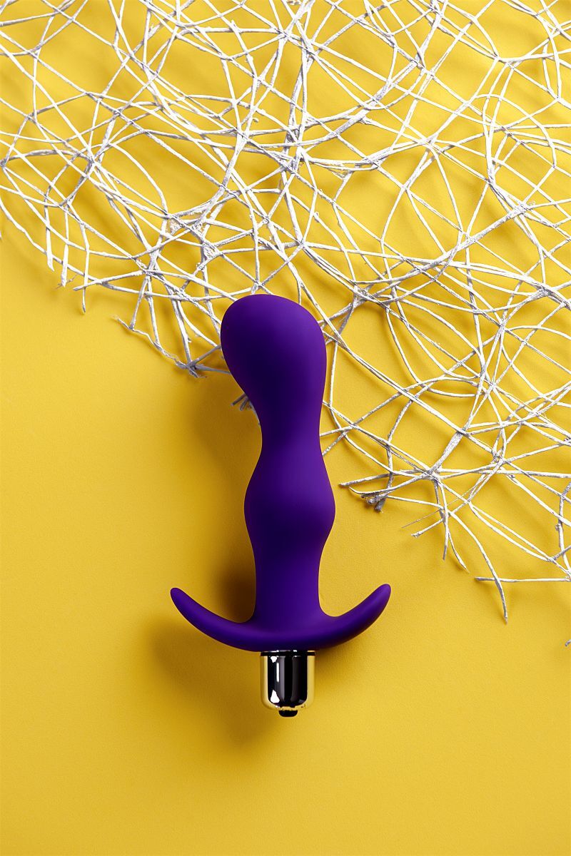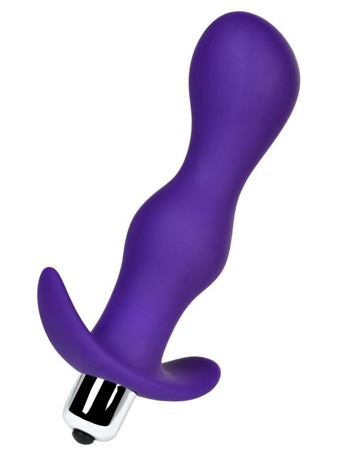 Фиолетовая изогнутая анальная вибропробка - 14 см.