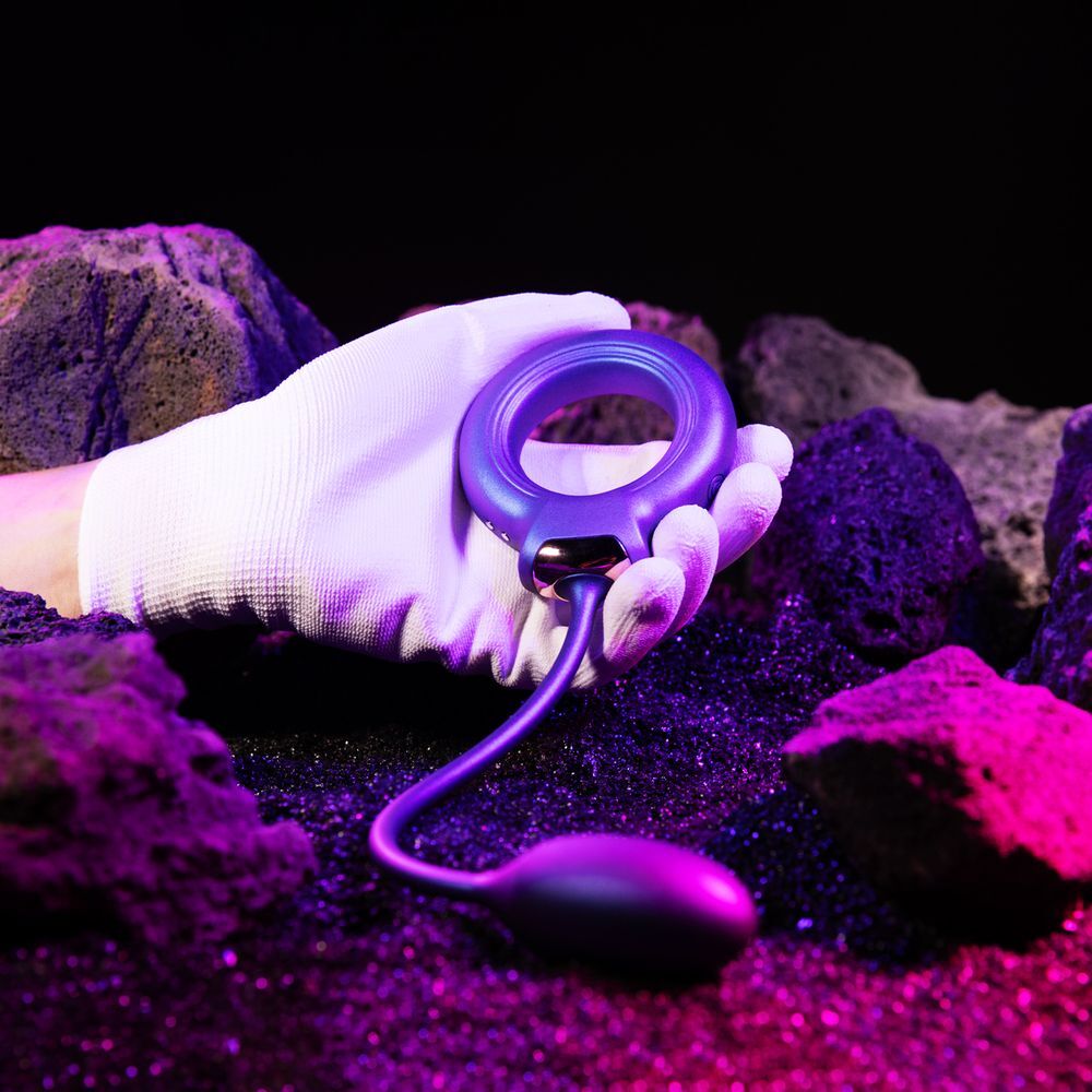 Фиолетовое эрекционное виброкольцо с анальным шариком Eclipse