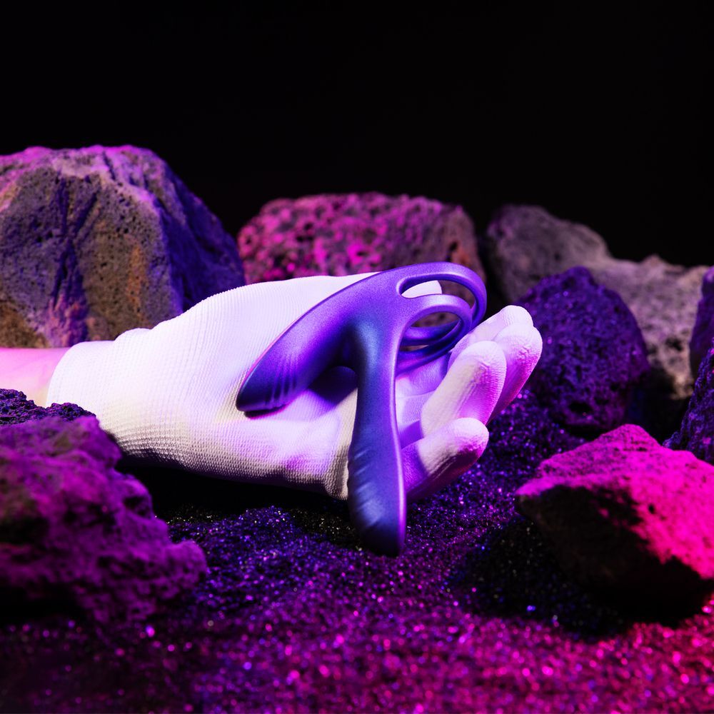 Фиолетовое эрекционное виброкольцо с клиторальной подушечкой Infinity Ignite