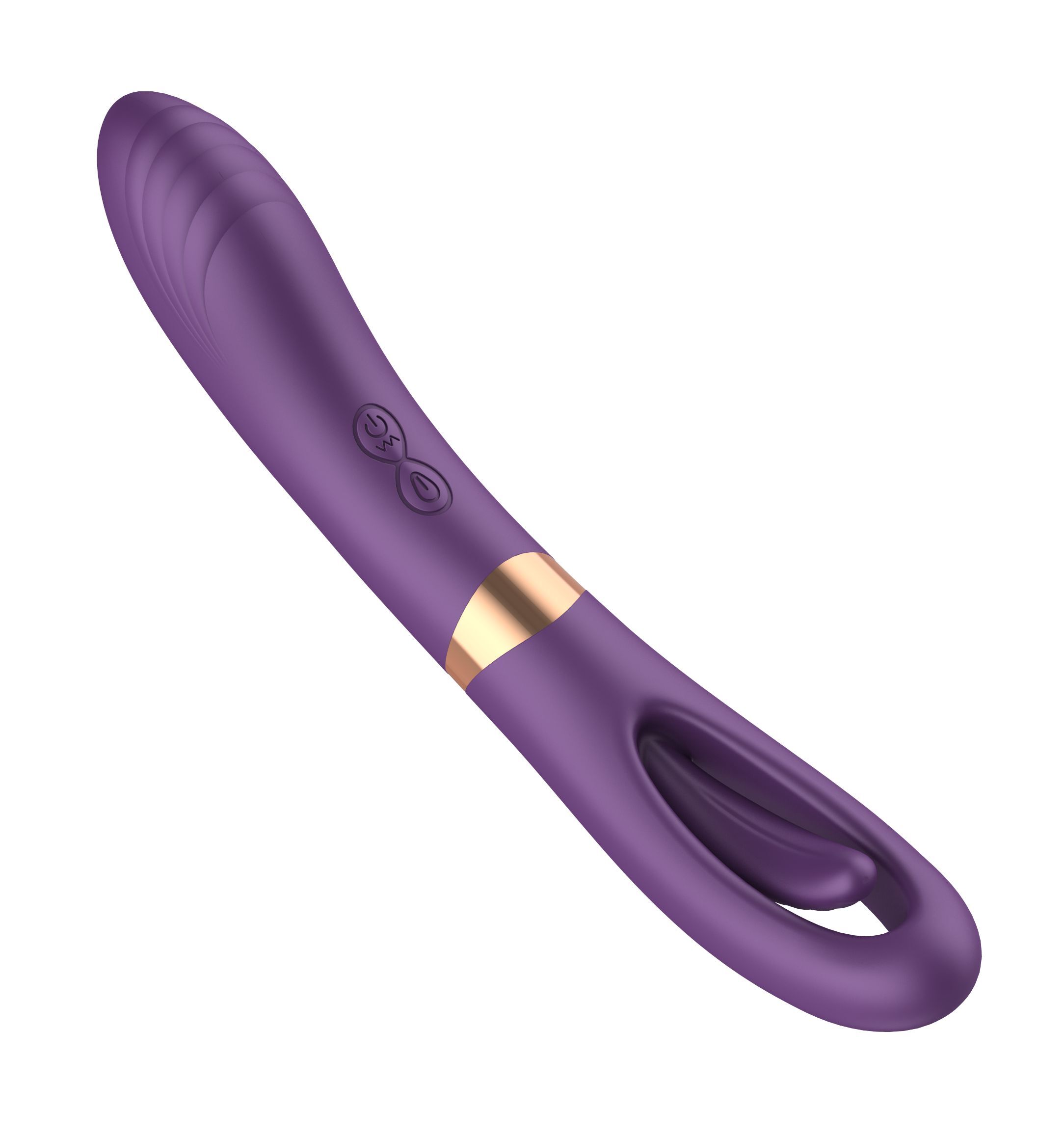 Фиолетовый силиконовый вибратор с функцией фингеринга - 23,5 см.