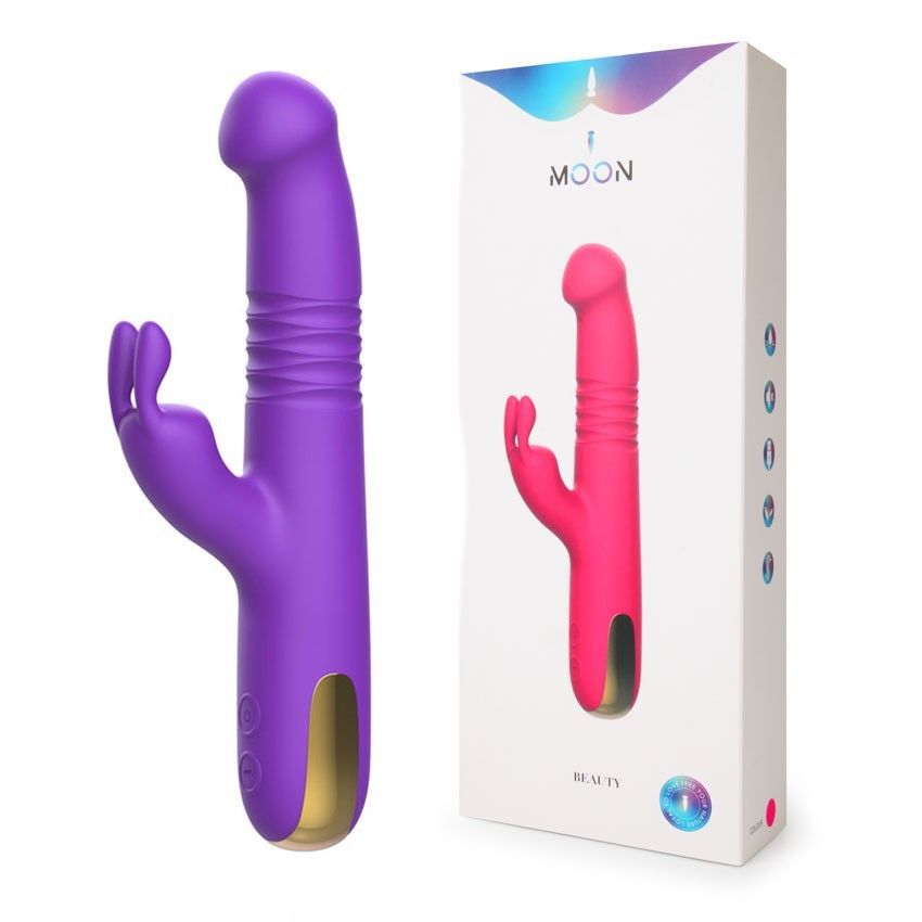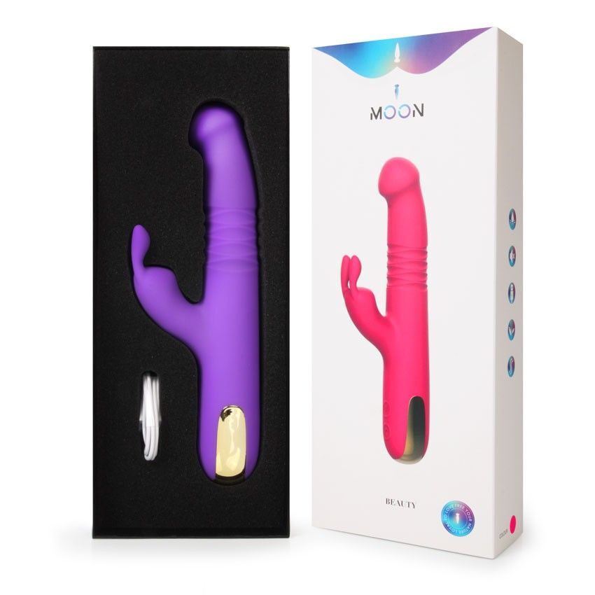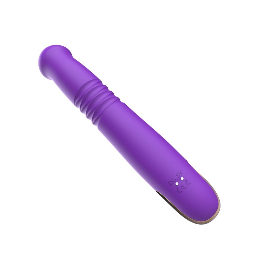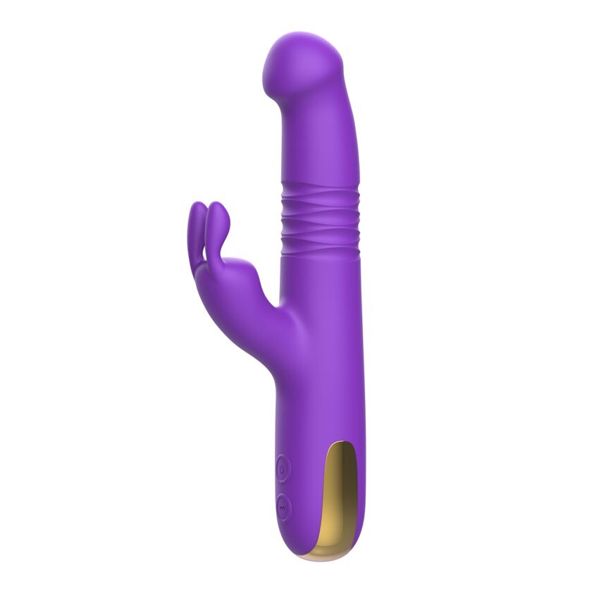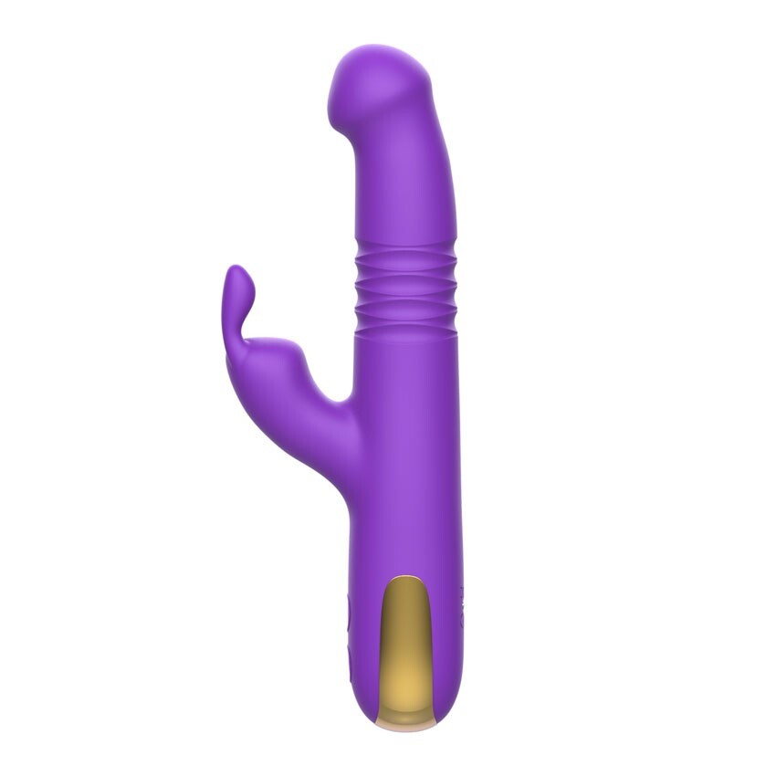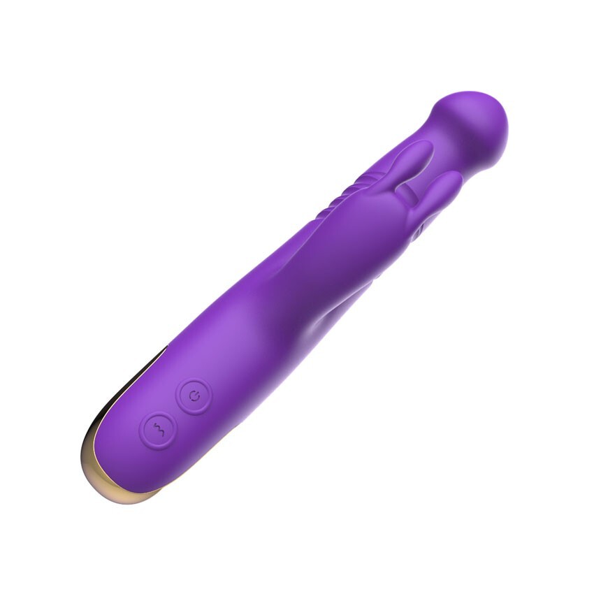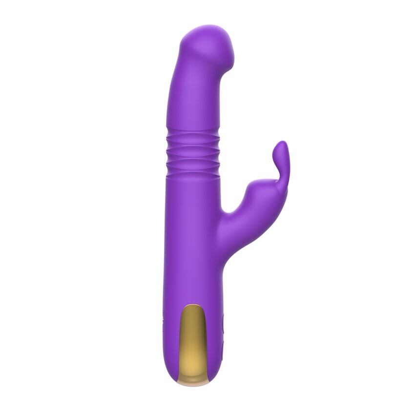 Фиолетовый вибратор-ротатор со стимулятором клитора и возвратно-поступательными движениями - 22,4 см.
