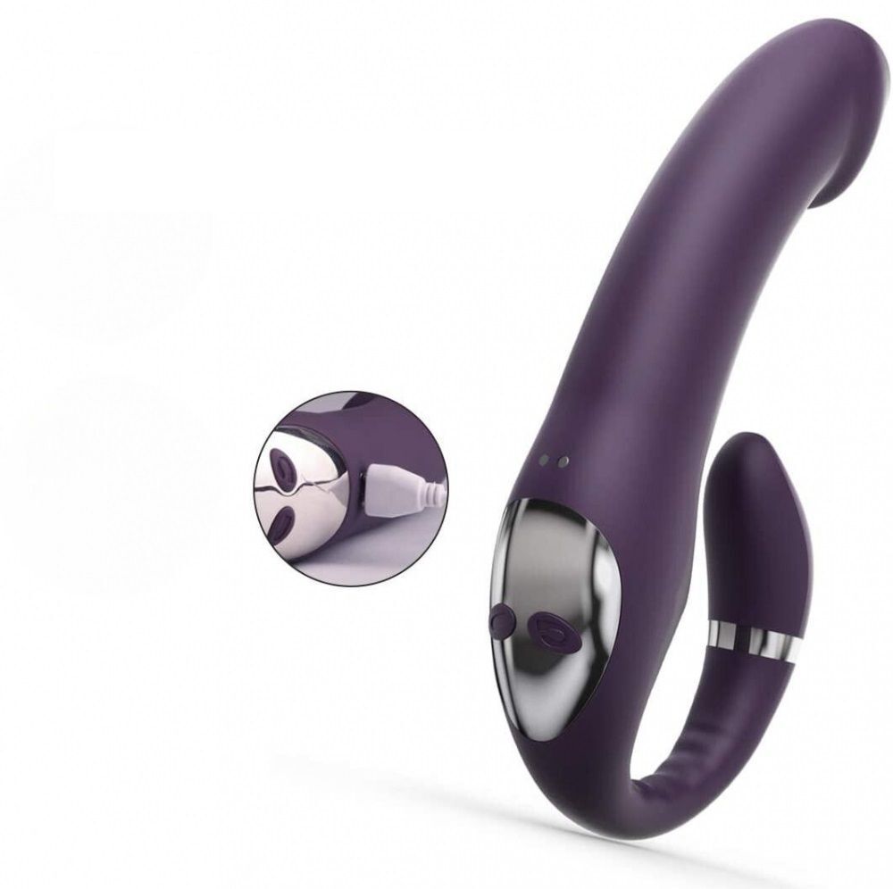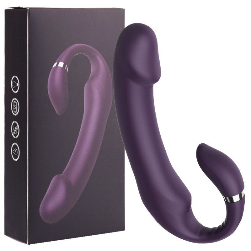 Фиолетовый вибратор с клиторальным отростком - 19 см.