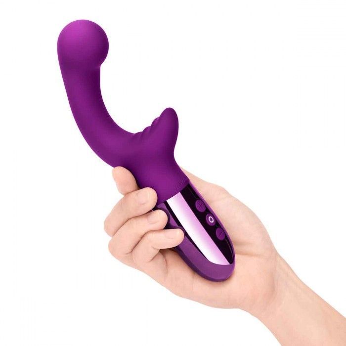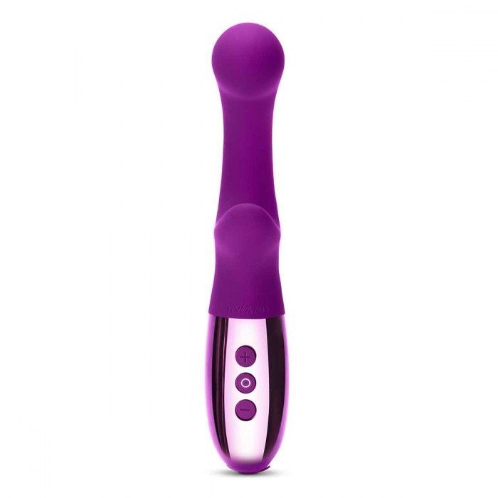 Фиолетовый вибромассажер с двумя моторами Le Wand XO - 19 см.