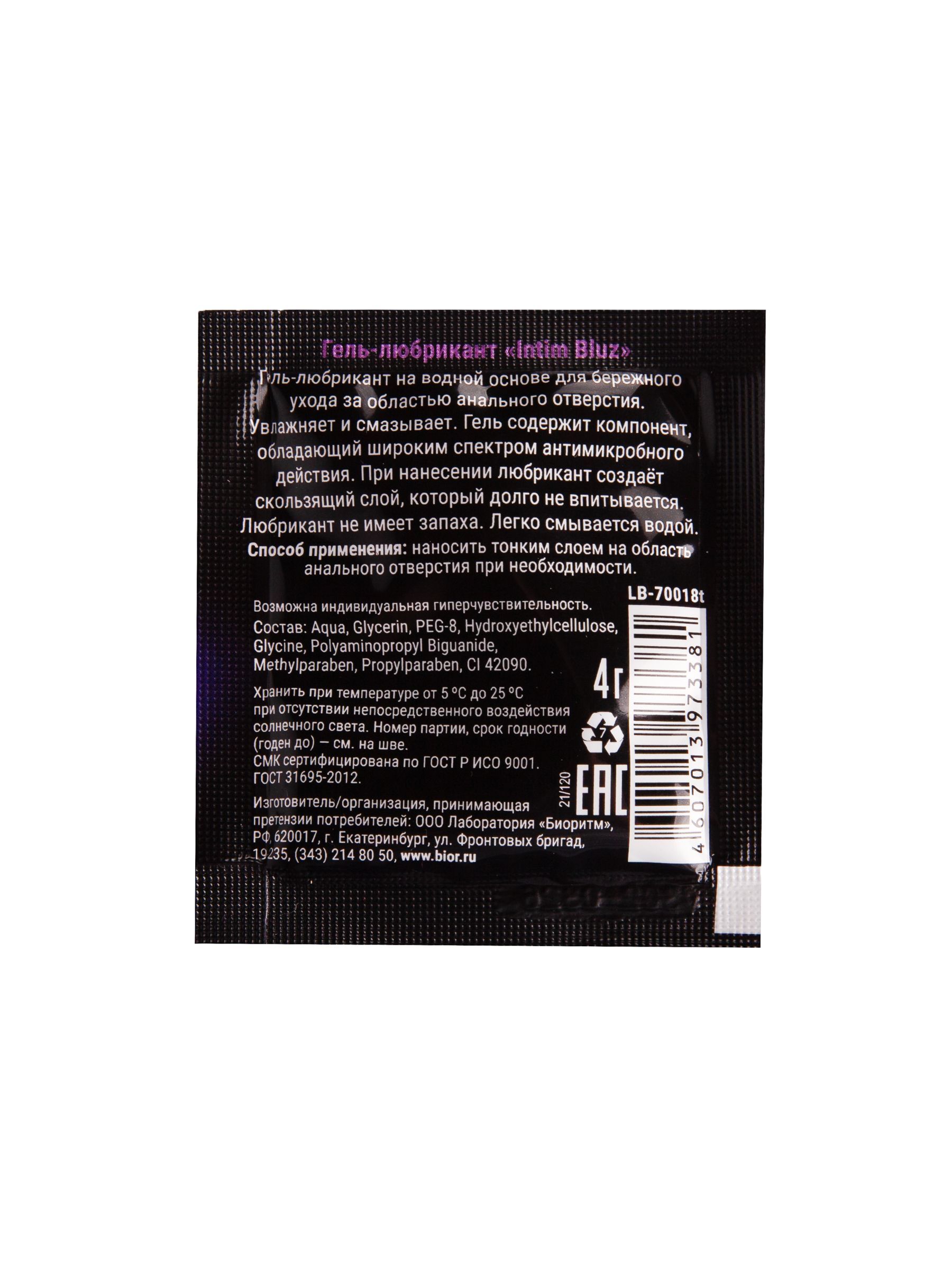 Гель-лубрикант Intim bluz в одноразовой упаковке - 4 гр.