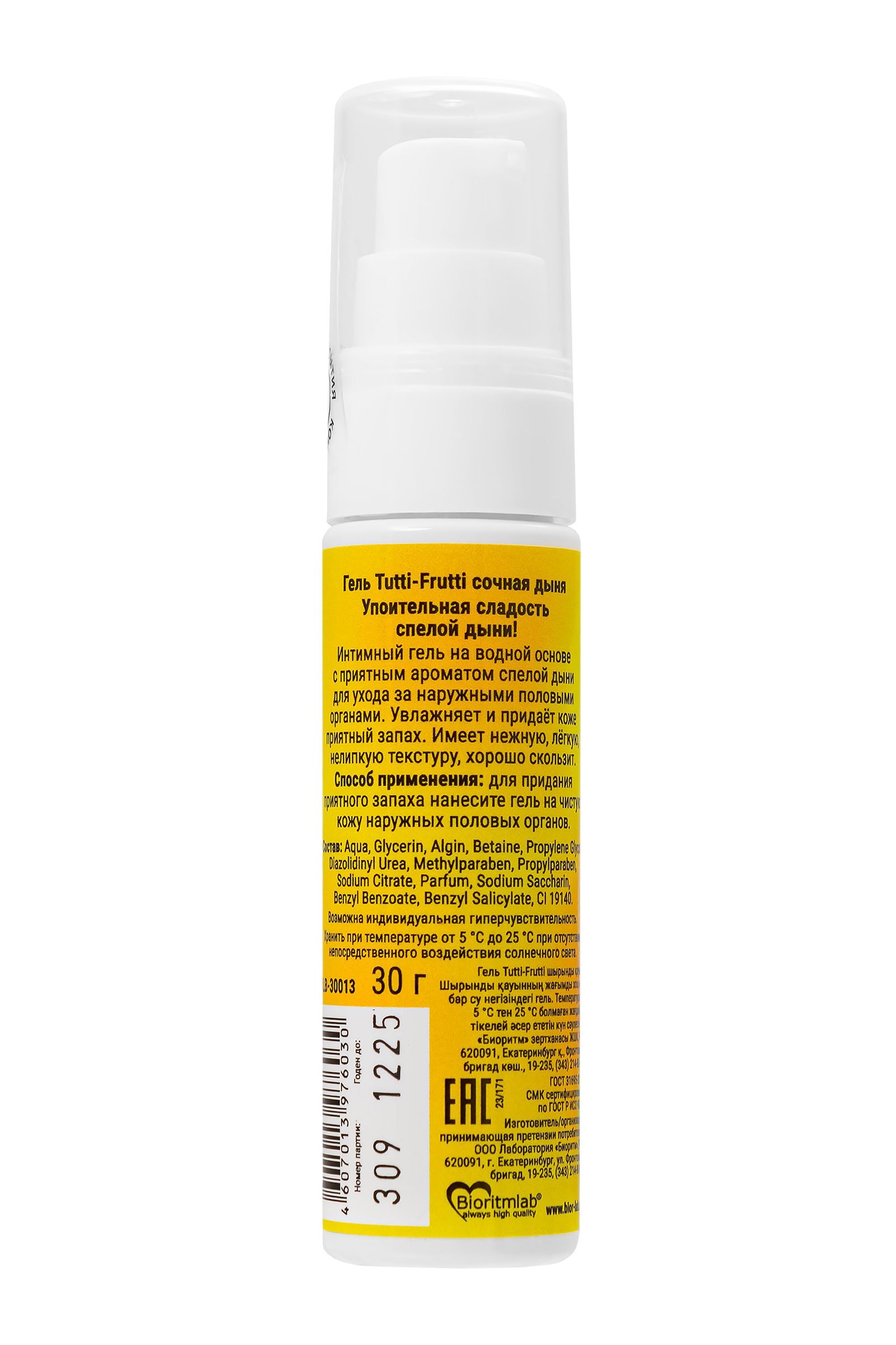 Гель-смазка Tutti-frutti со вкусом сочной дыни - 30 гр.