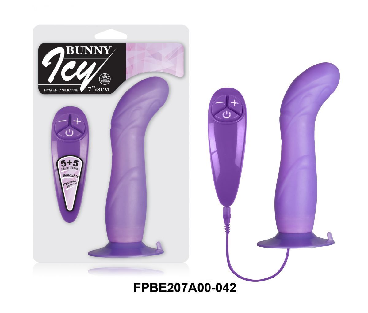 Гибкий фиолетовый вибратор на присоске - 18 см.