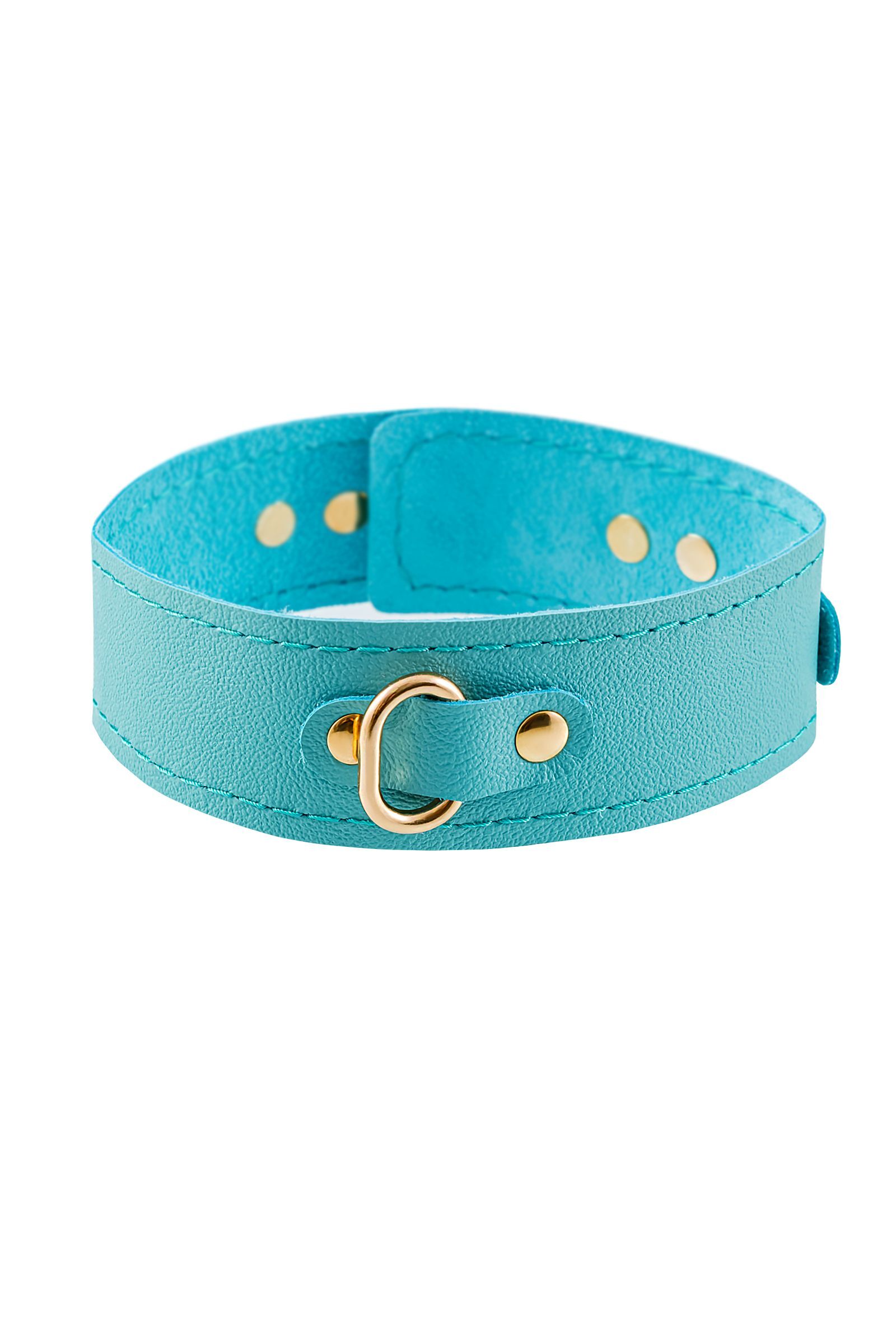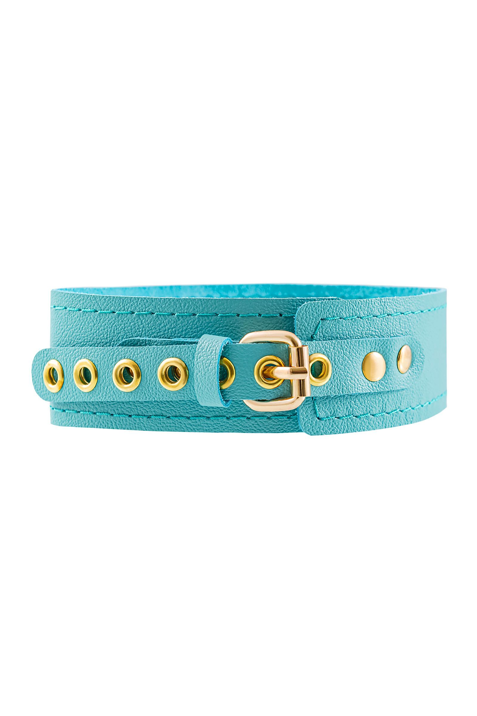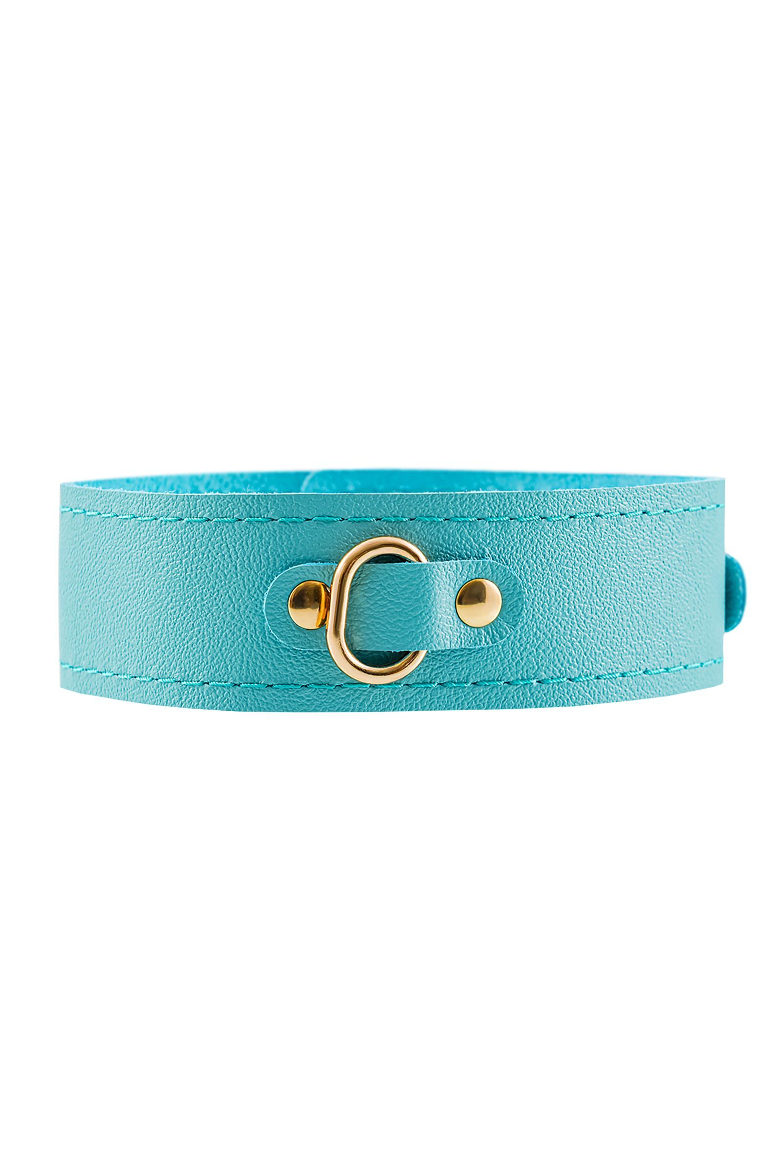 Голубой кожаный однослойный ошейник с прошивкой