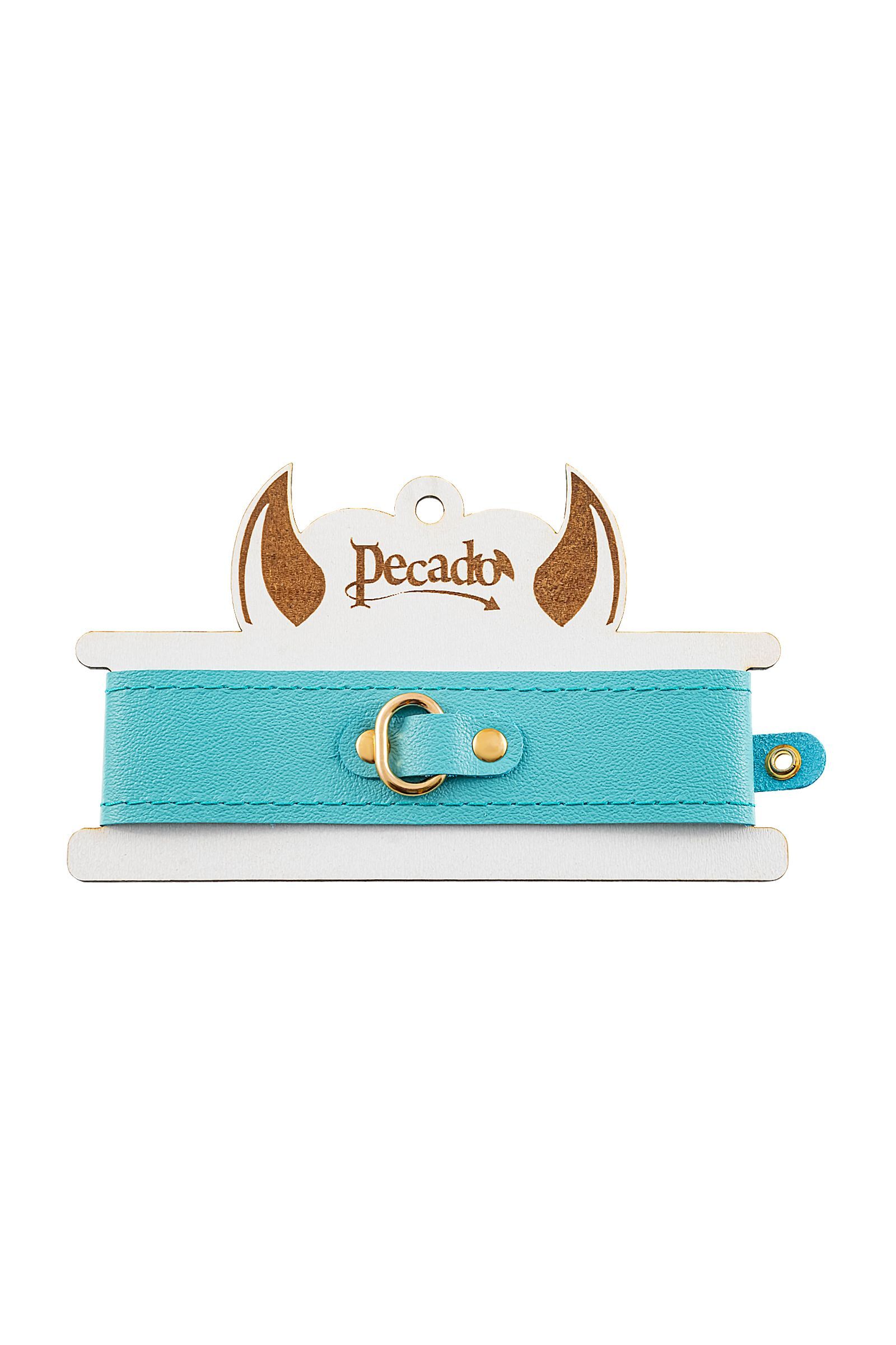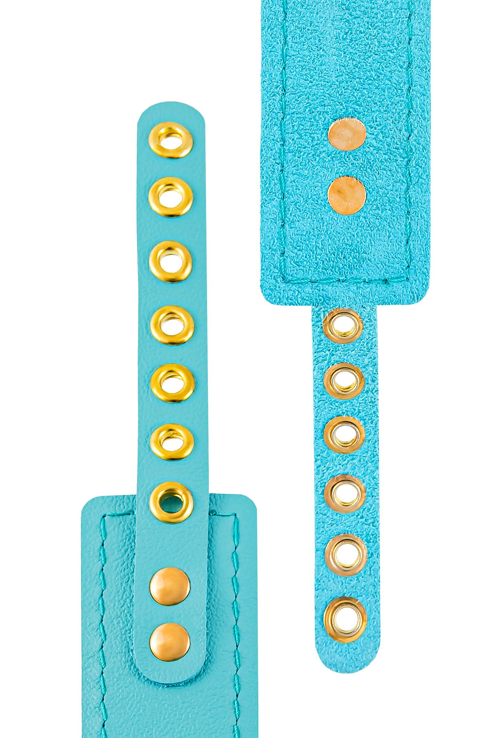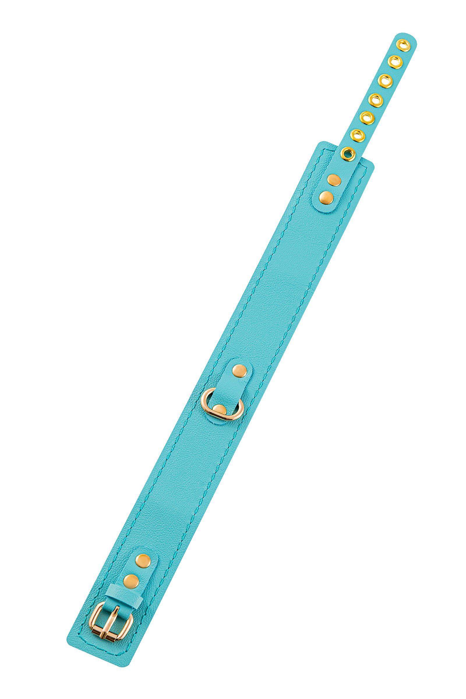 Голубой кожаный однослойный ошейник с прошивкой