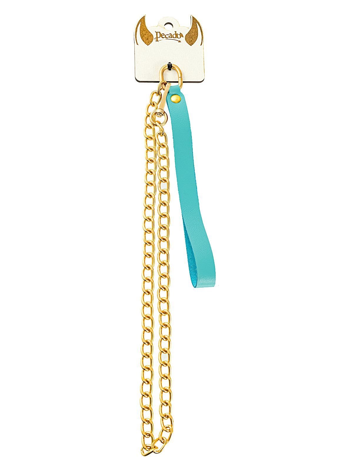 Голубой кожаный поводок с карабином для ошейника - 80 см.