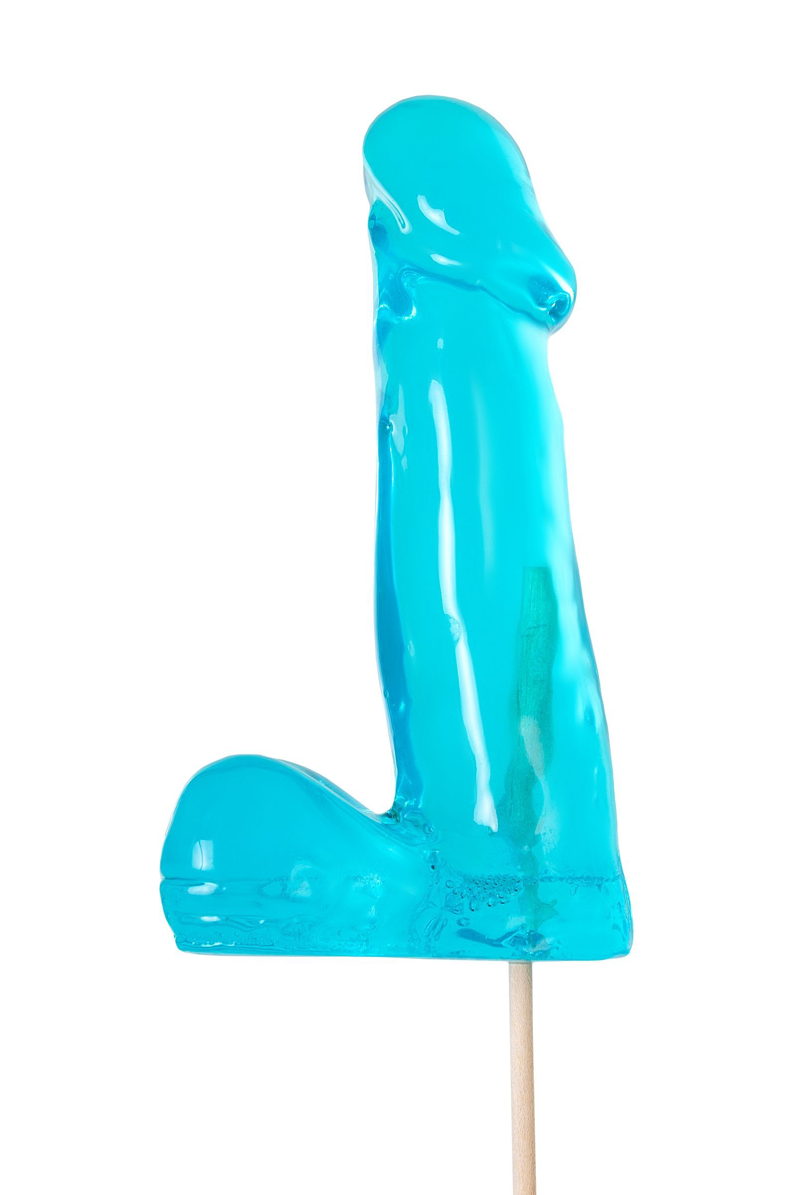 Голубой леденец в форме члена со вкусом блю кюрасао - 173 гр.