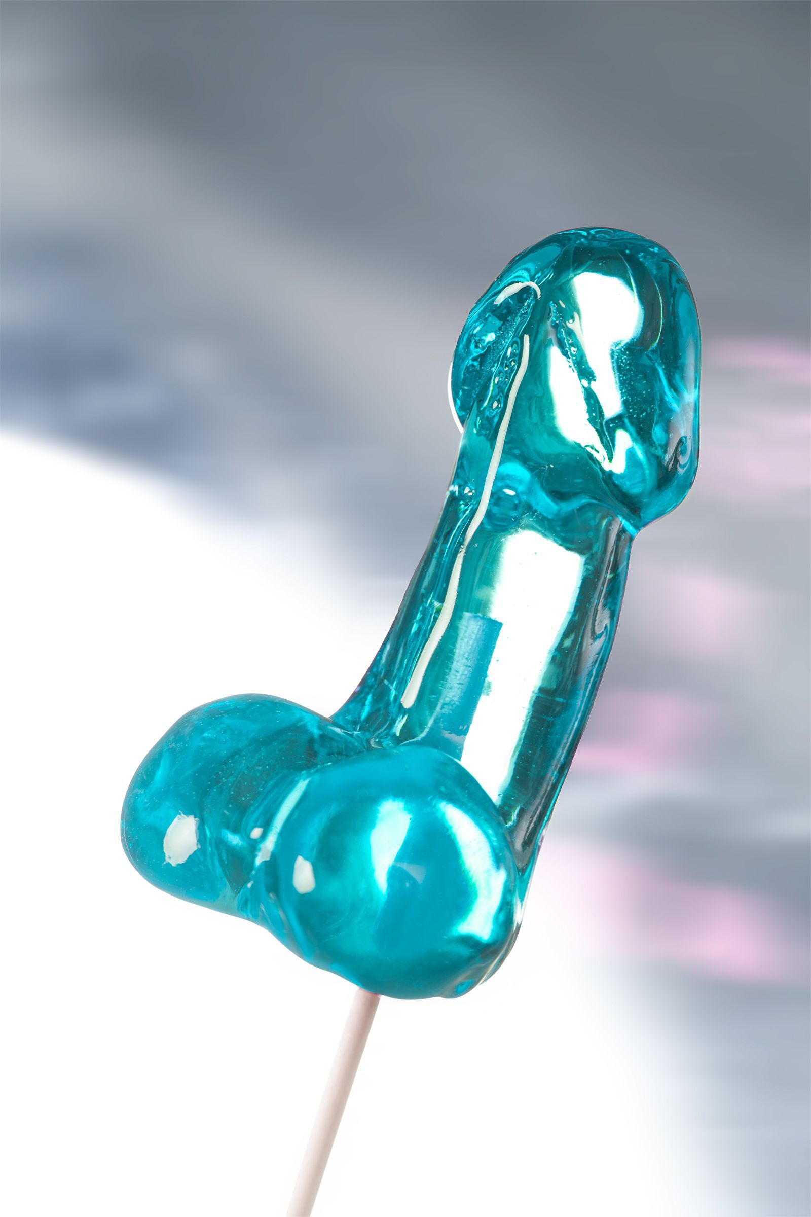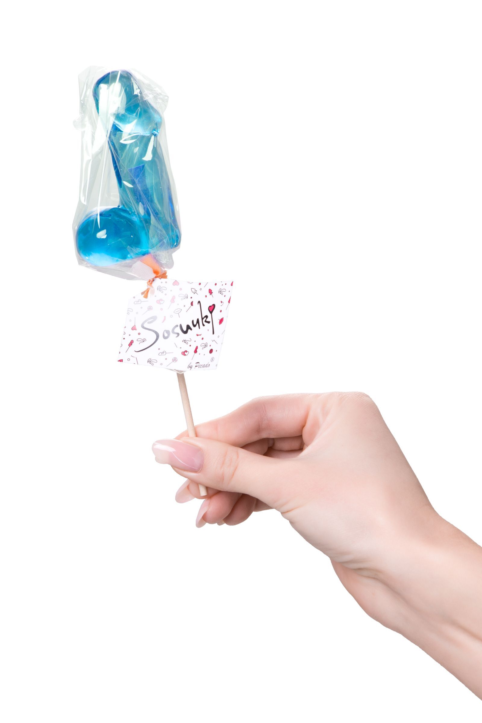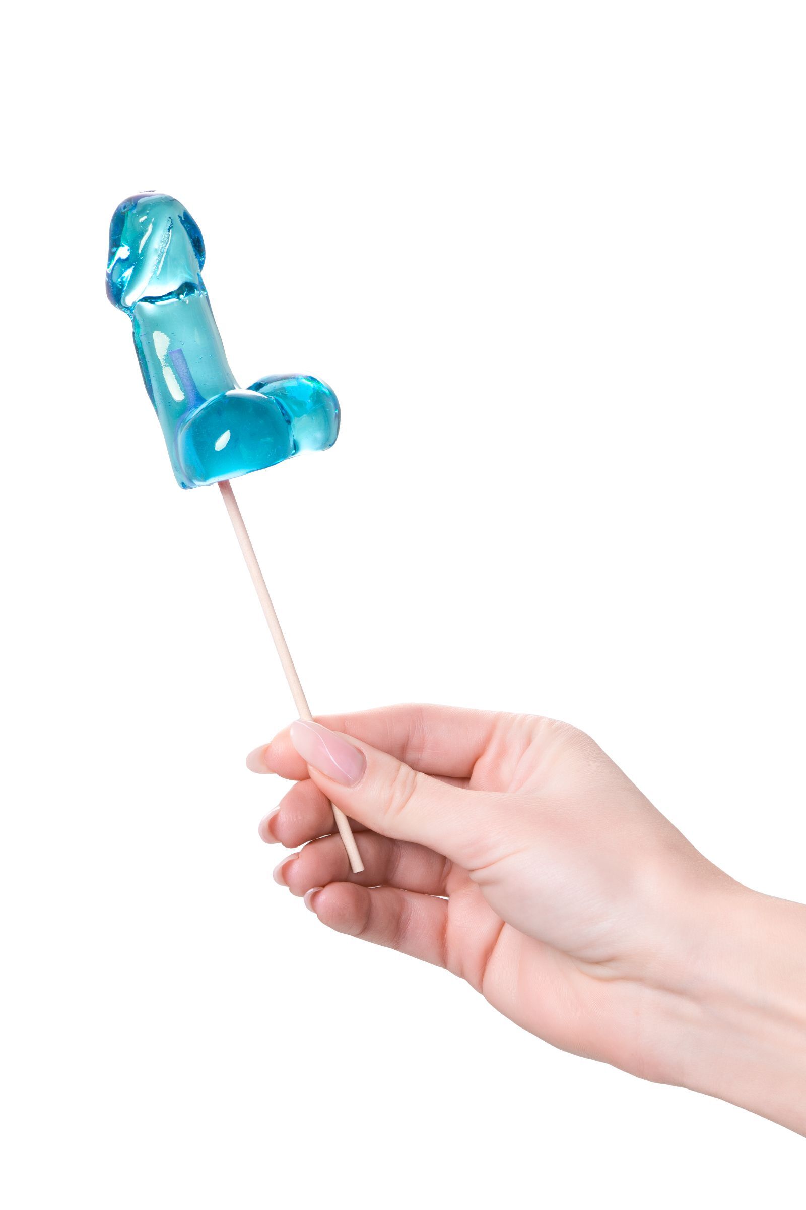 Голубой леденец в форме члена со вкусом блю кюрасао - 80 гр.