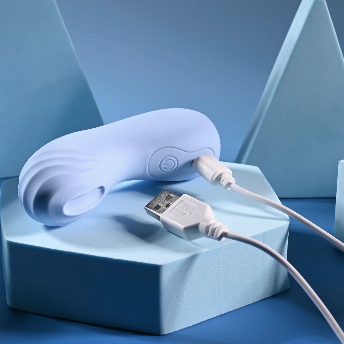 Голубой рельефный вибромассажёр на палец Good Point