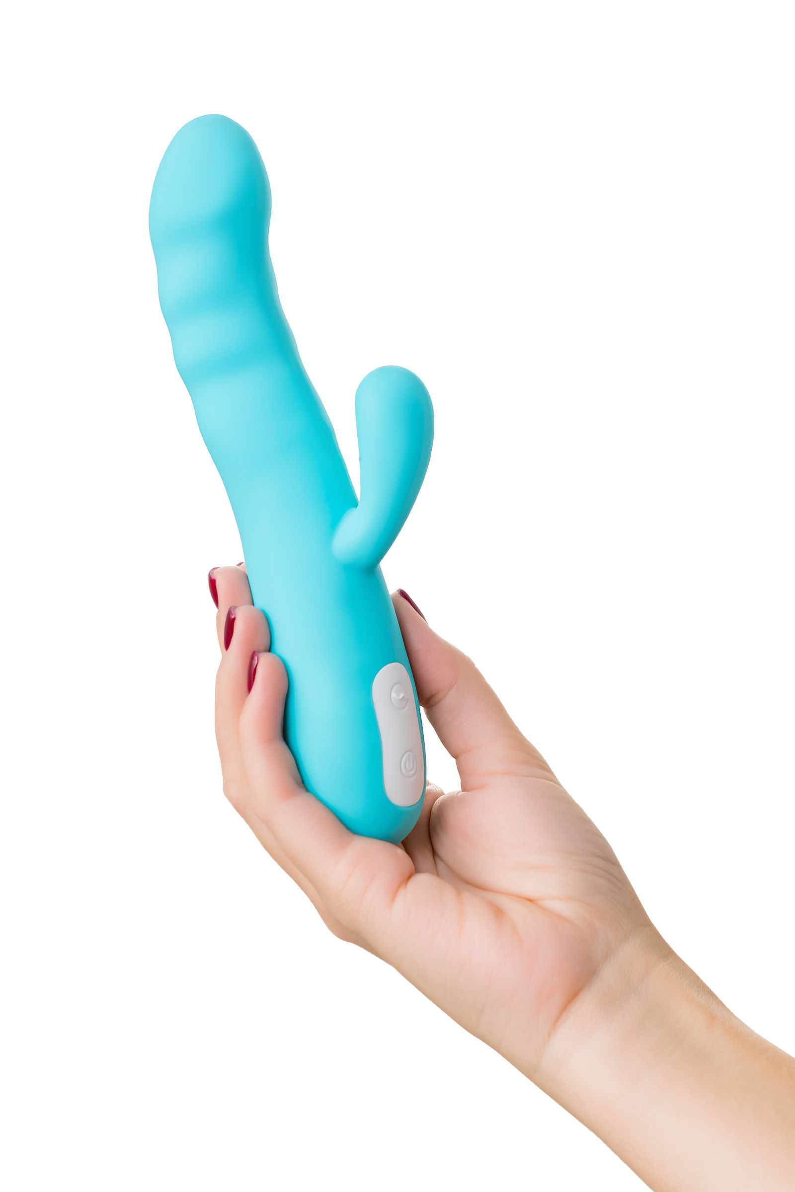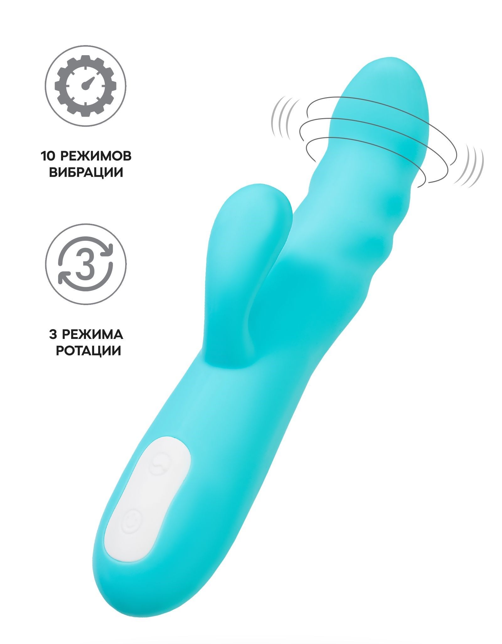 Голубой вибратор-ротатор с клиторальной стимуляцией Merry-Swi - 20,7 см.