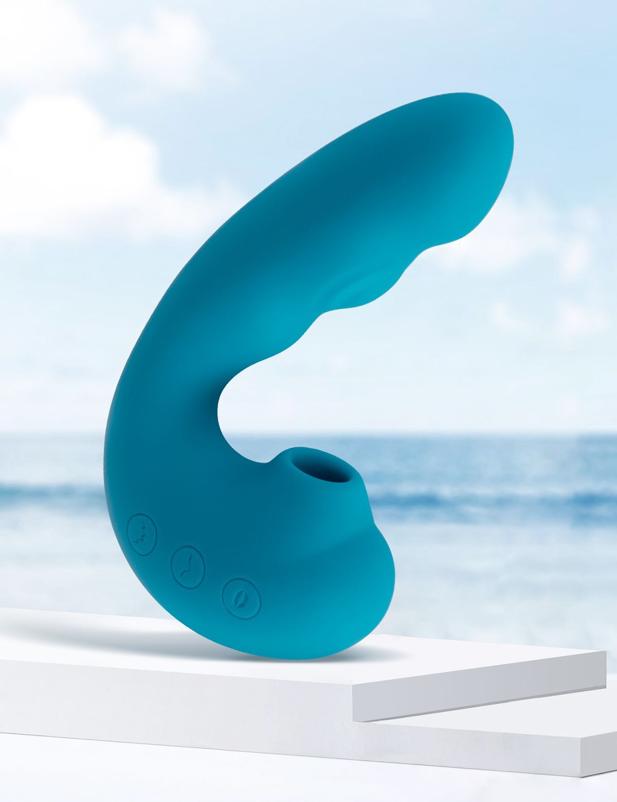 Голубой вибратор Tara с вакуумной стимуляцией и функцией постукивания