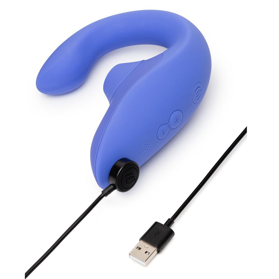 Голубой вибромассажер для двойной стимуляции Womanizer Blend