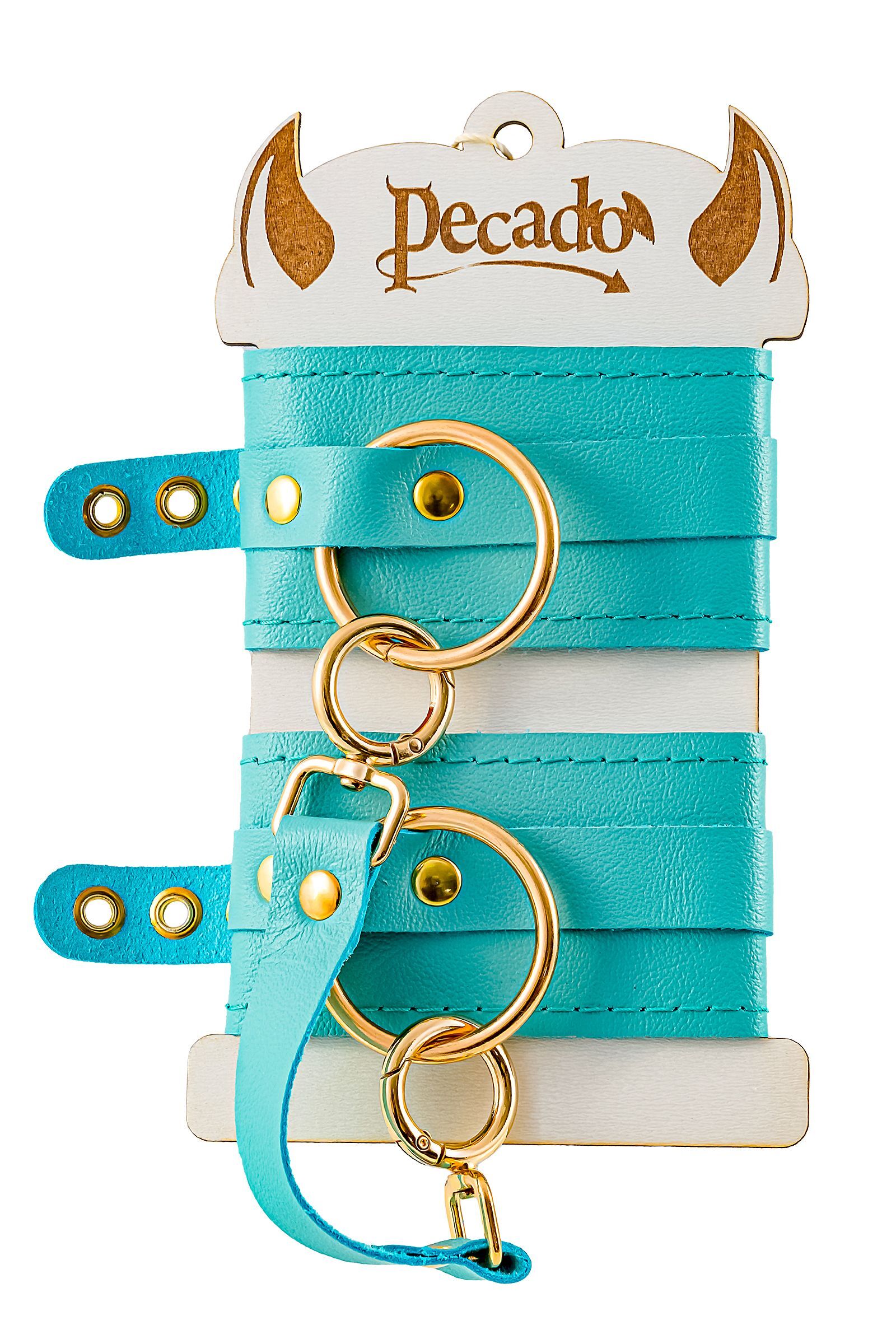 Голубые однослойные кожаные оковы