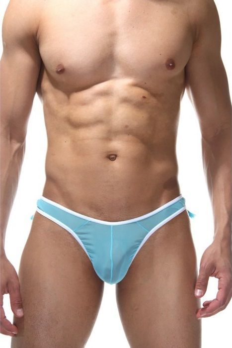 Голубые трусы-тонги с бахромой на ягодицах