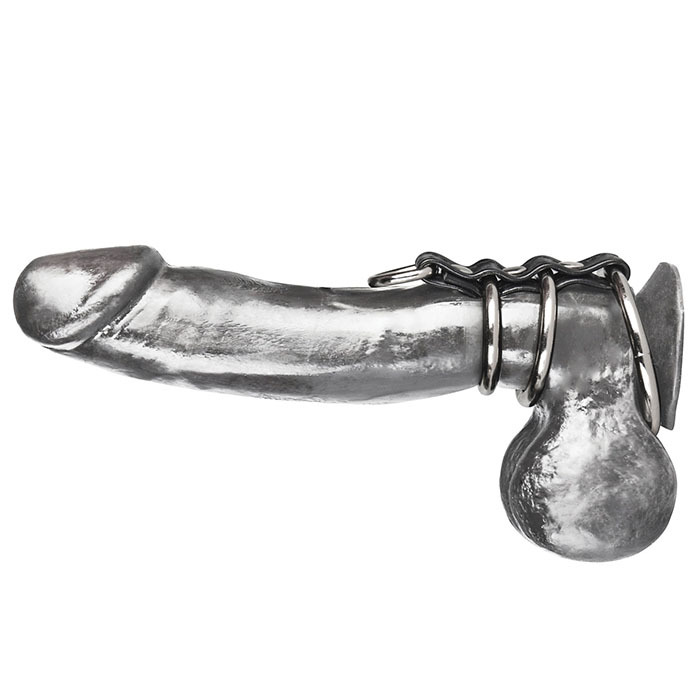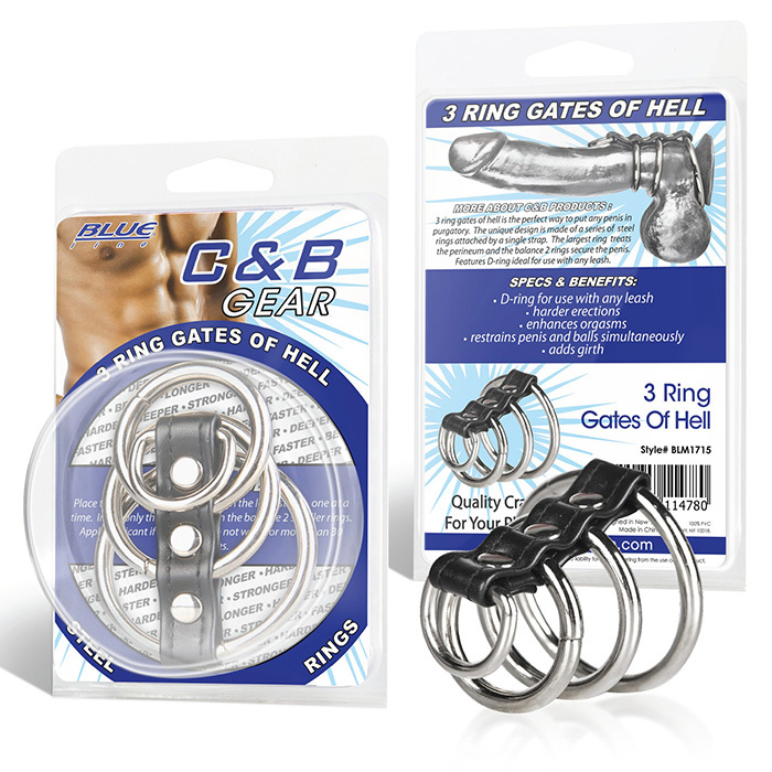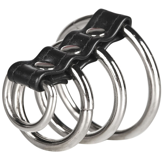 Хомут на пенис из трех металлических колец и кольца для привязи 3 RING GATES OF HELL
