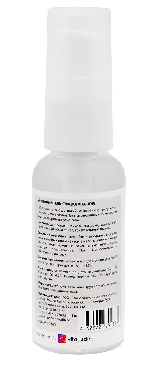Интимный гель-смазка на водной основе VITA UDIN с ароматом ежевики - 30 мл.