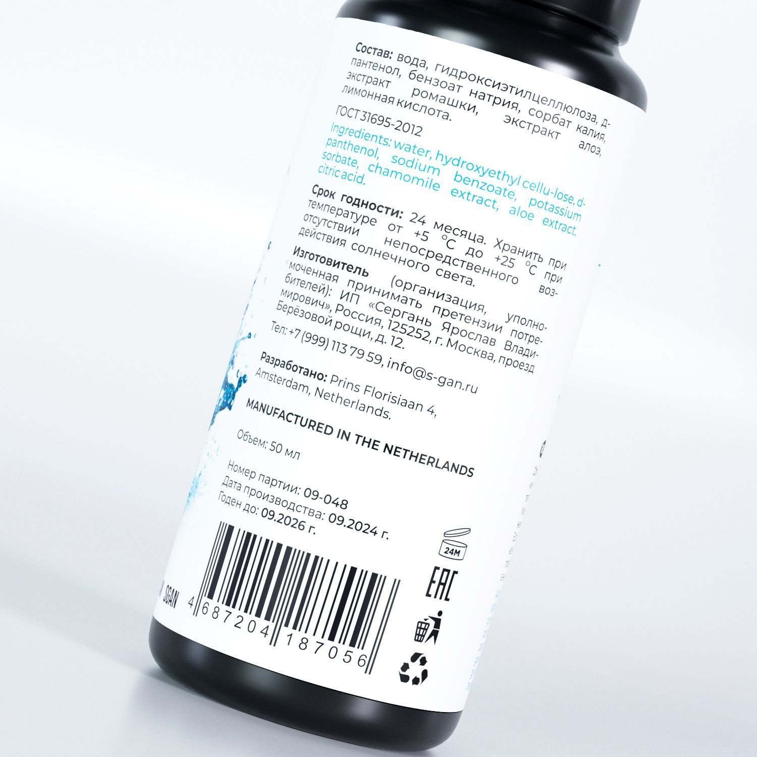 вода, гидроксиэтилцеллюлоза, бензоат натрия, сорбат калия, экстракт ромашки, экстракт алоэ, д-пантенол, лимонная кислота.