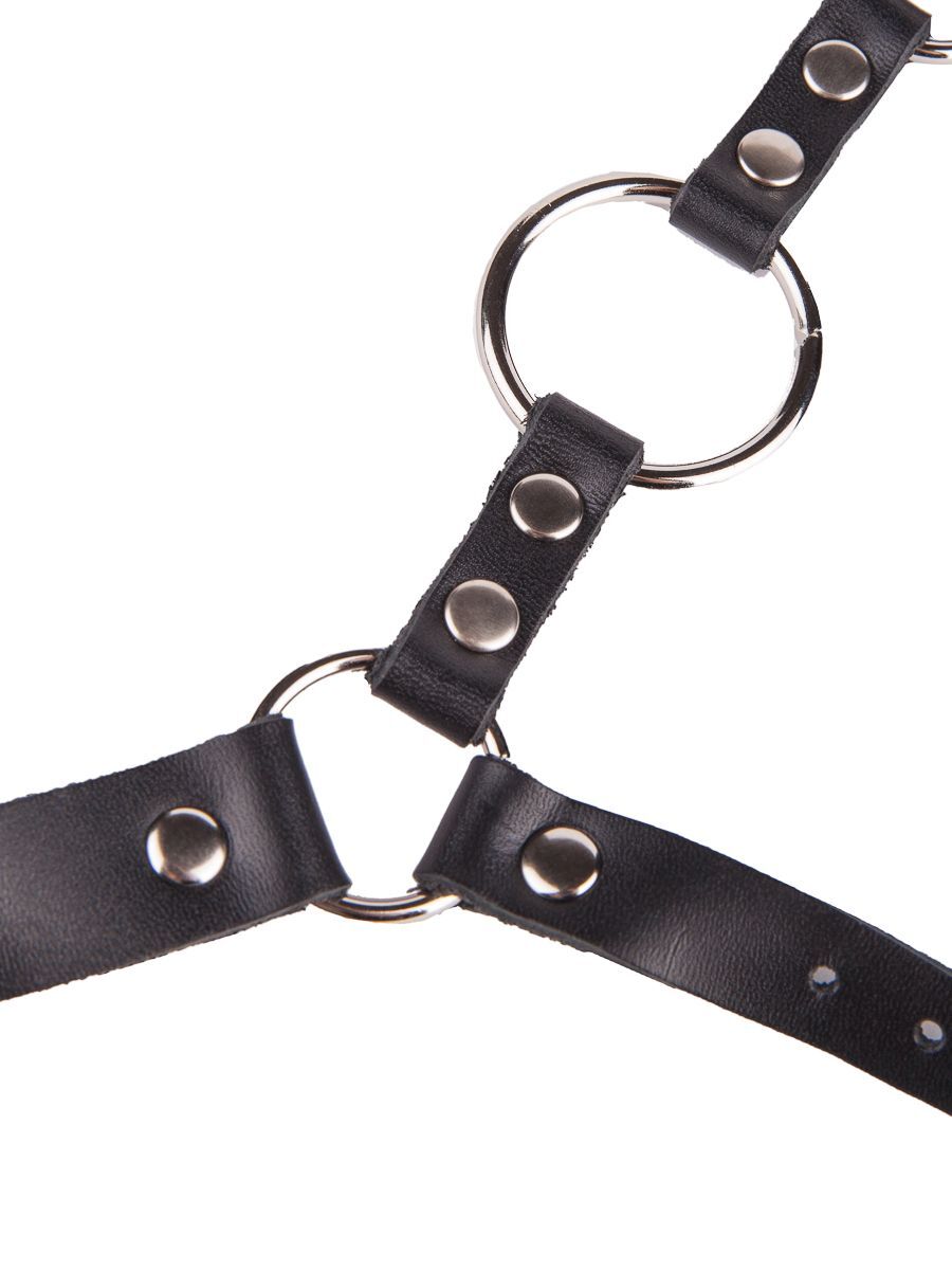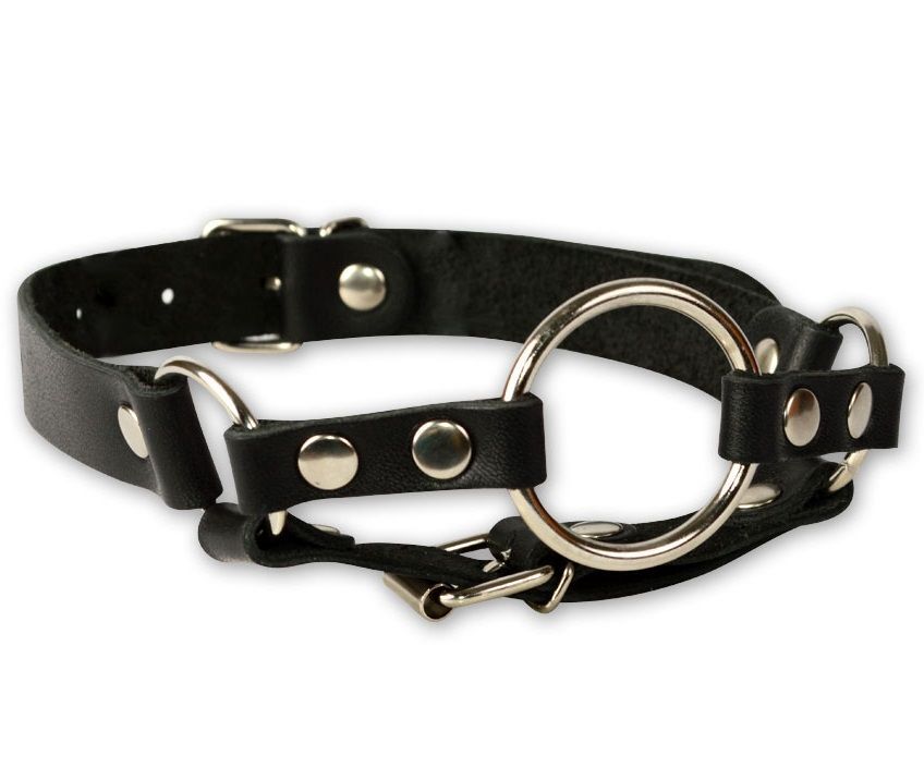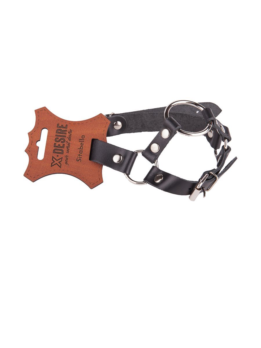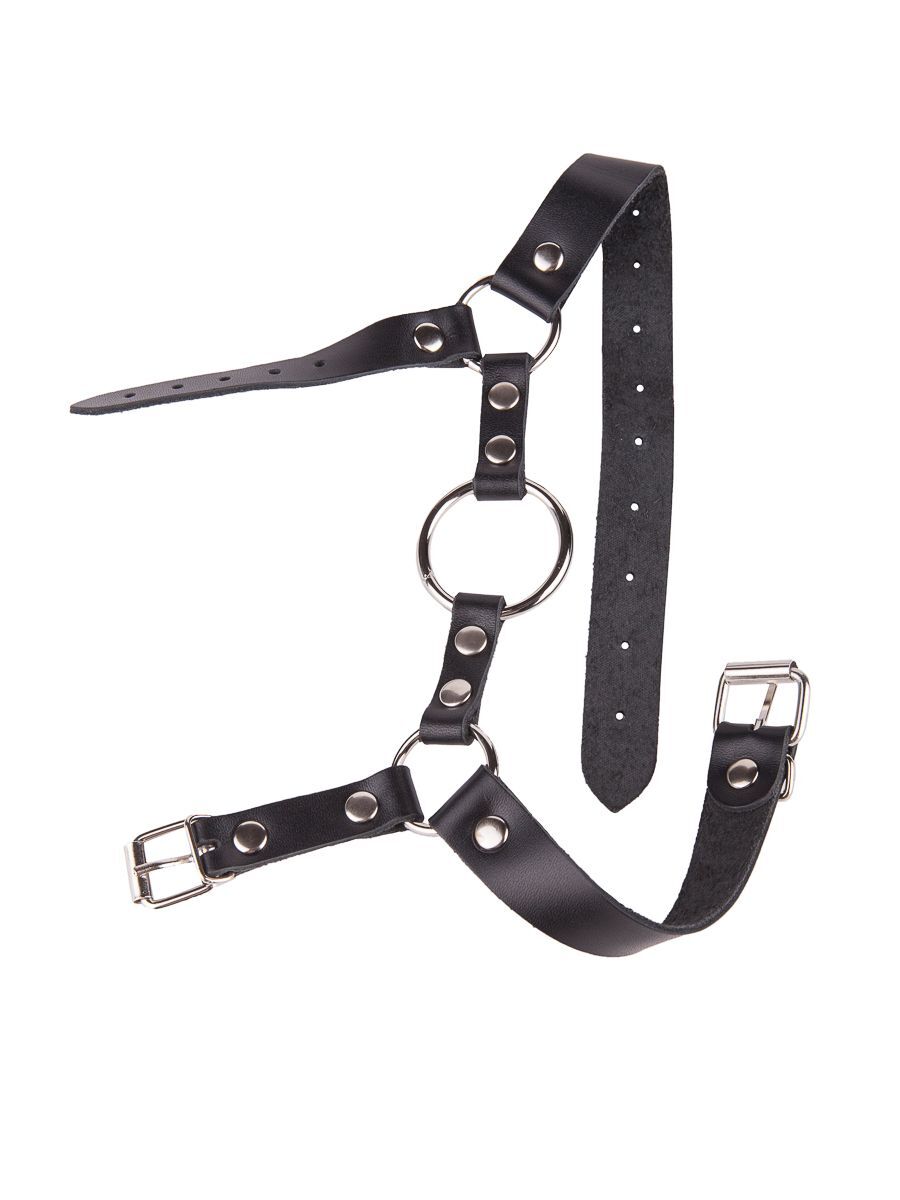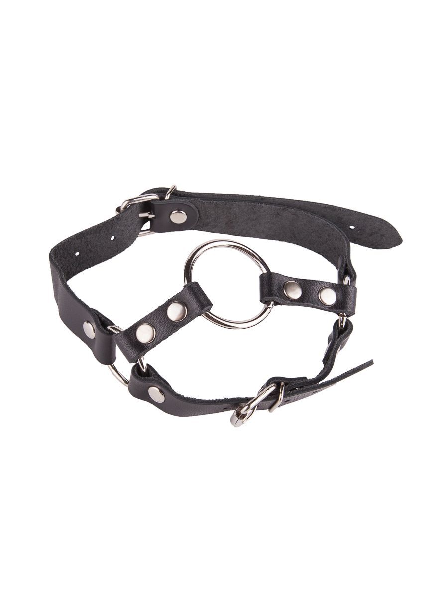 Кляп-кольцо на чёрных кожаных ремешках с застёжкой