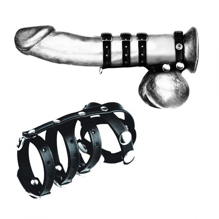 Комбинированный ремень на пенис с 3 кольцами и разделителем мошонки