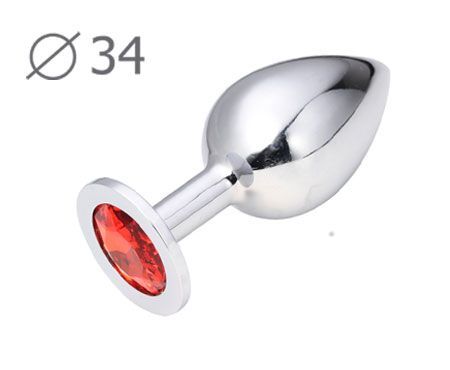Коническая серебристая анальная втулка с красным кристаллом - 8,2 см.