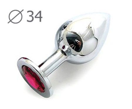 Коническая серебристая анальная втулка с малиновым кристаллом - 8,2 см.