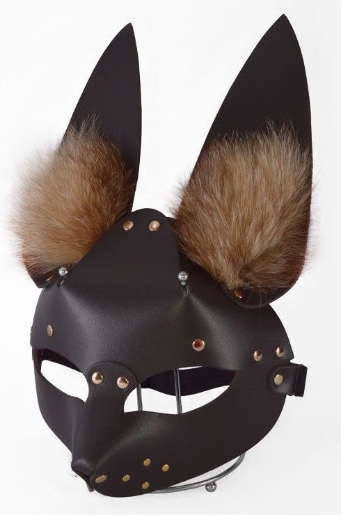 Коричневая маска Зайка с меховыми ушками