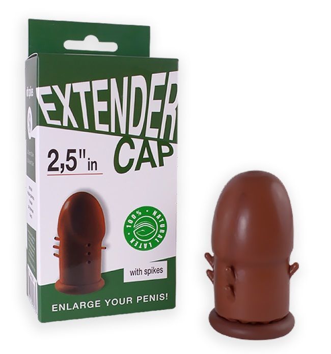 Коричневый латексный удлинитель пениса 2.5 in с шипиками