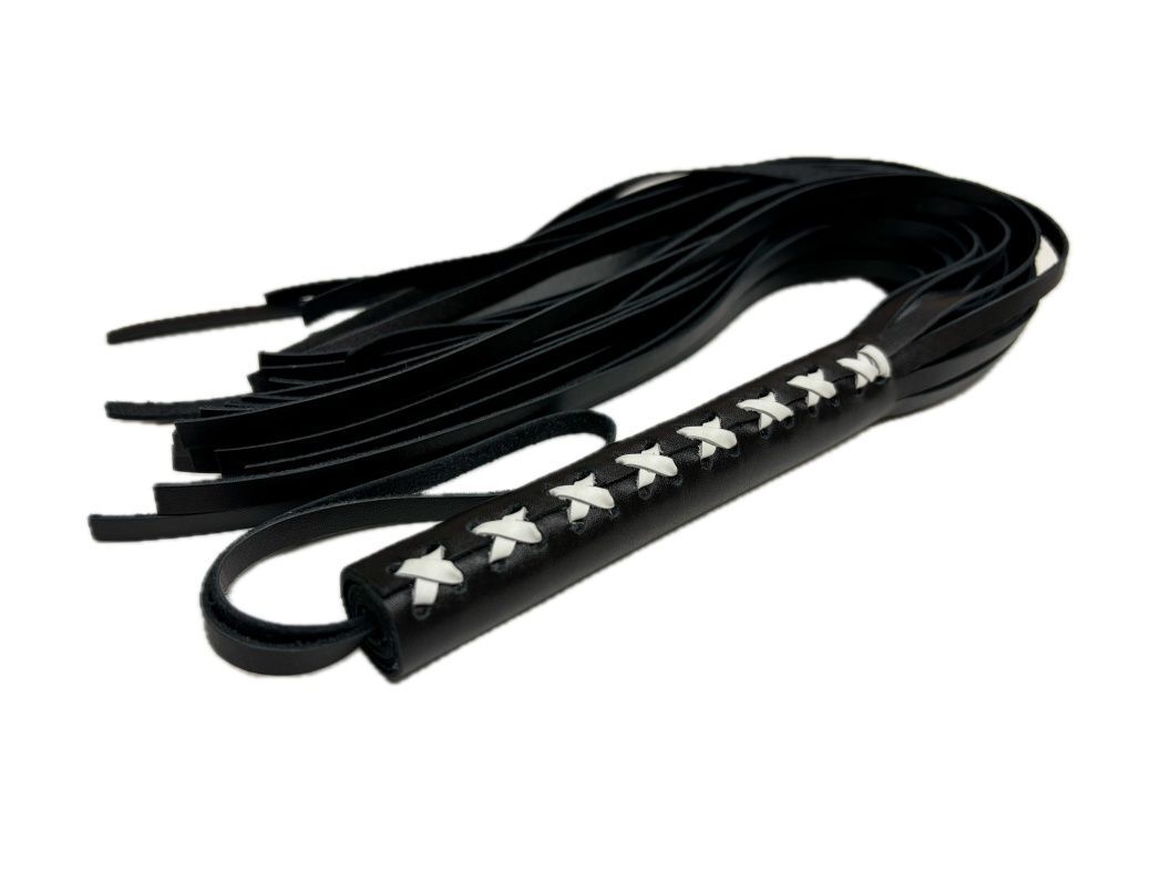 Кожаная плеть Sex Game с белым плетением на рукояти - 57 см.