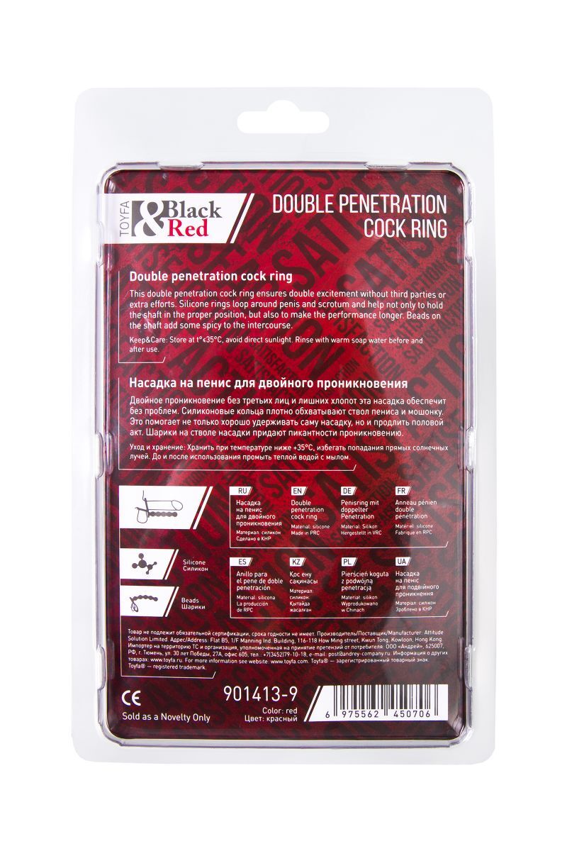 Красная насадка на пенис для двойного проникновения - 19,5 см.