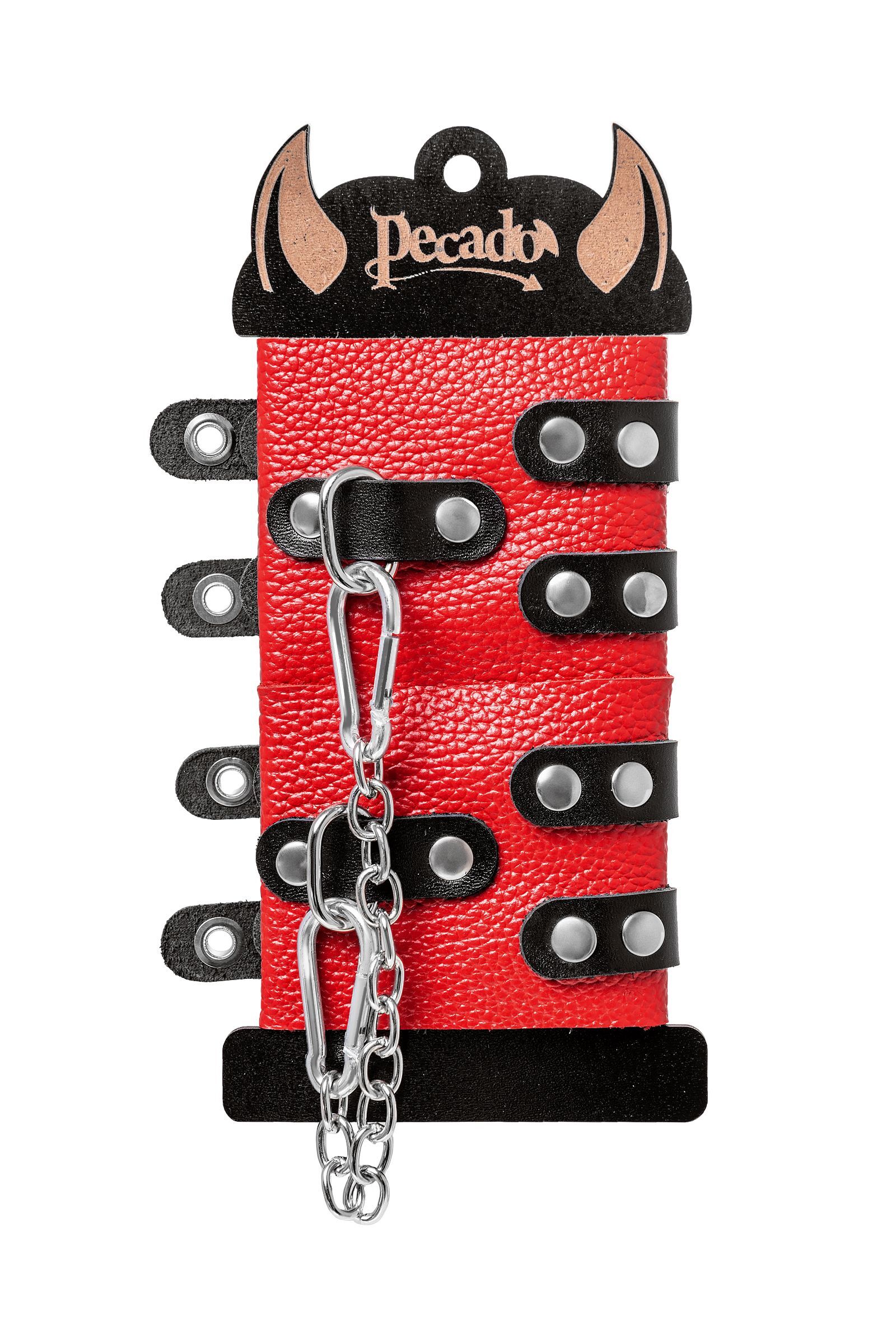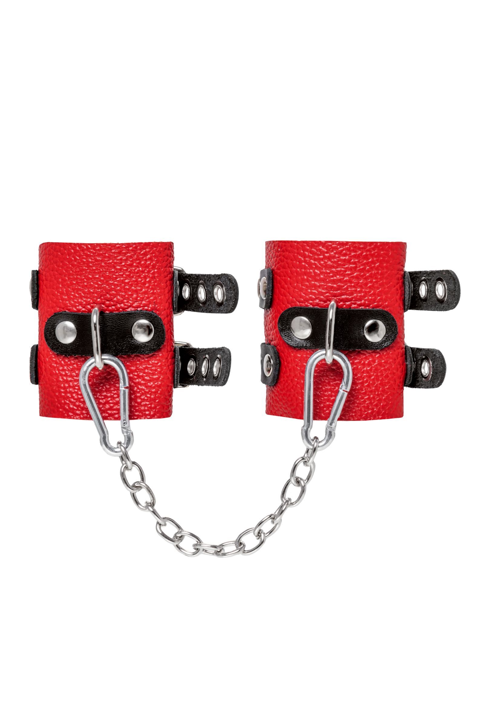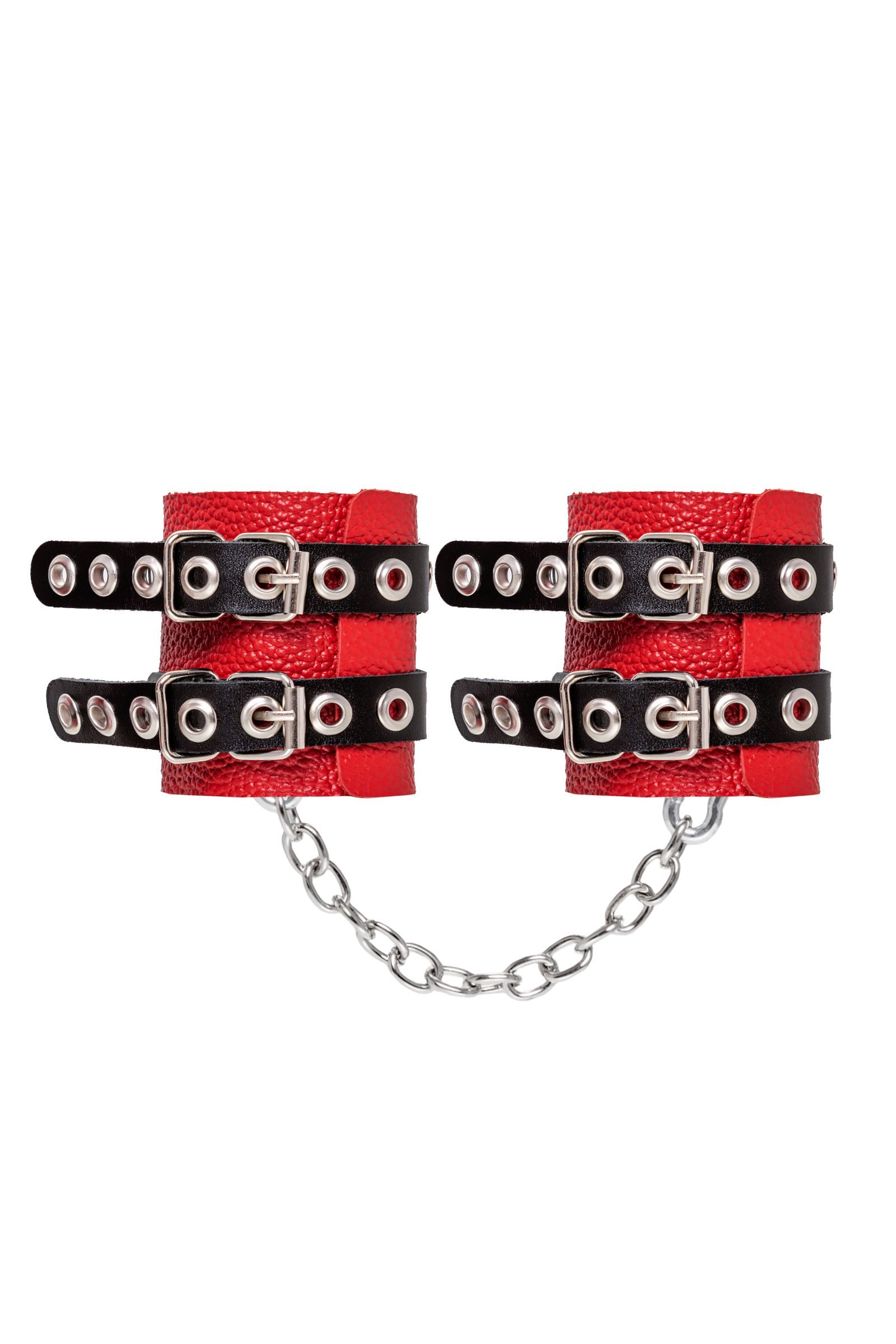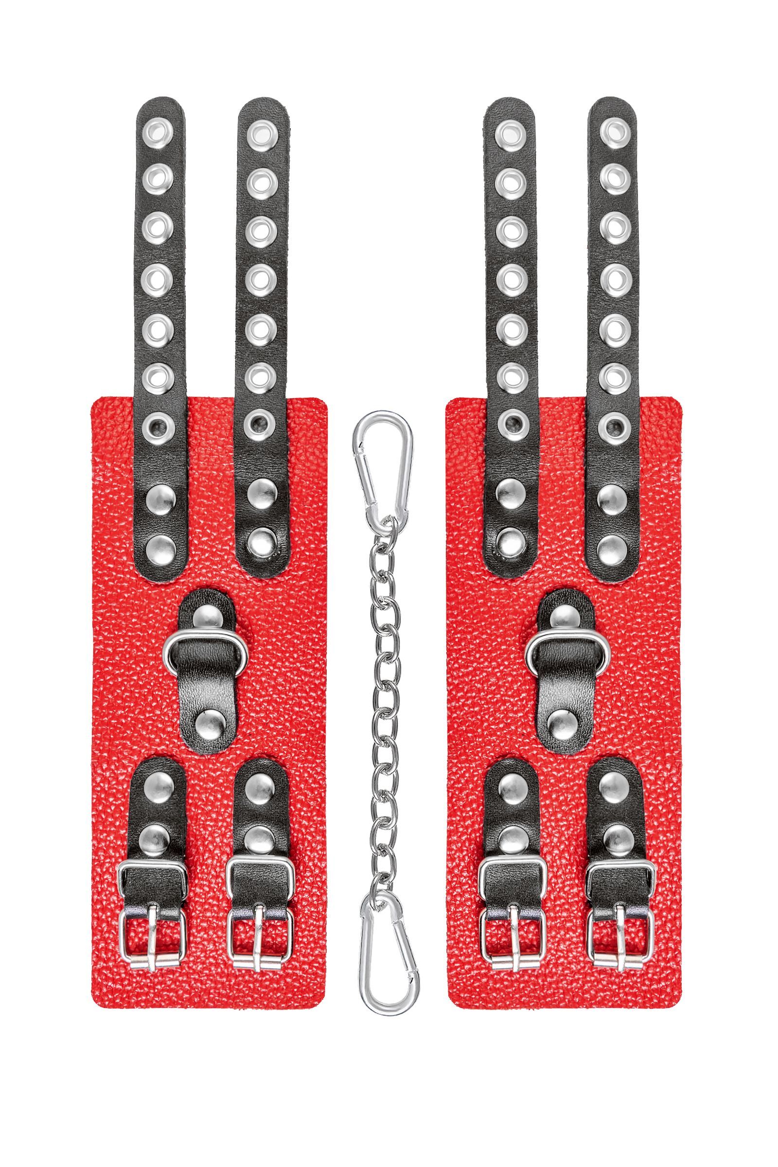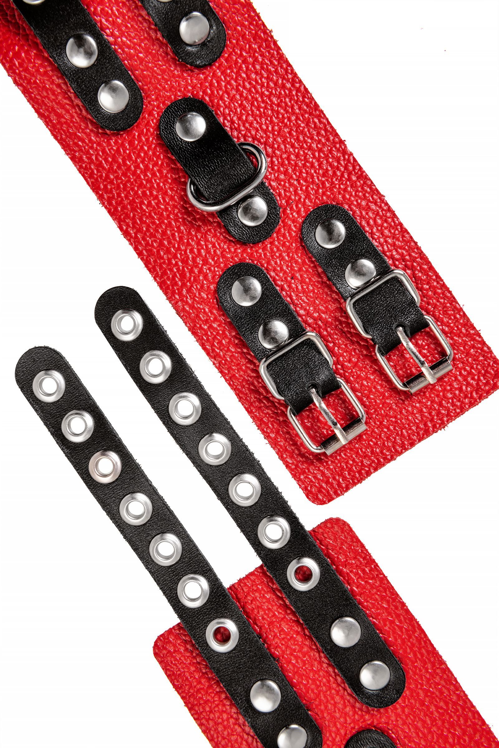 Красно-черные мягкие наручники с двумя ремешками с люверсами