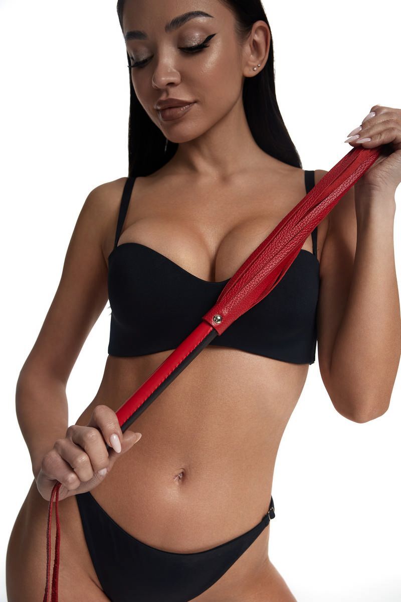 Красно-черный кожаный флоггер - 50 см.
