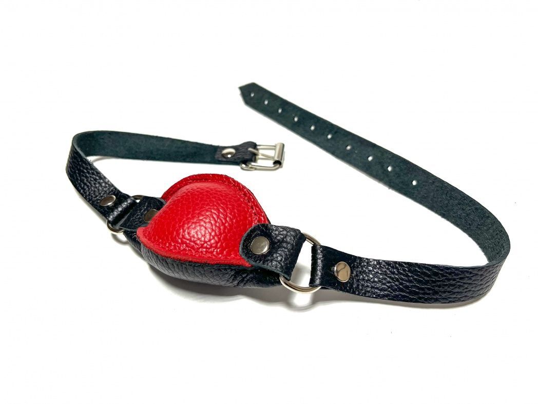 Красно-черный кожаный кляп на ремешках с пряжкой