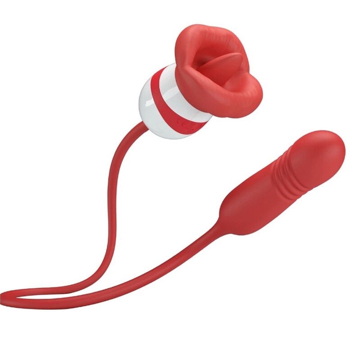 Красное продолговатое виброяицо Ashlynn с клиторальным стимулятором