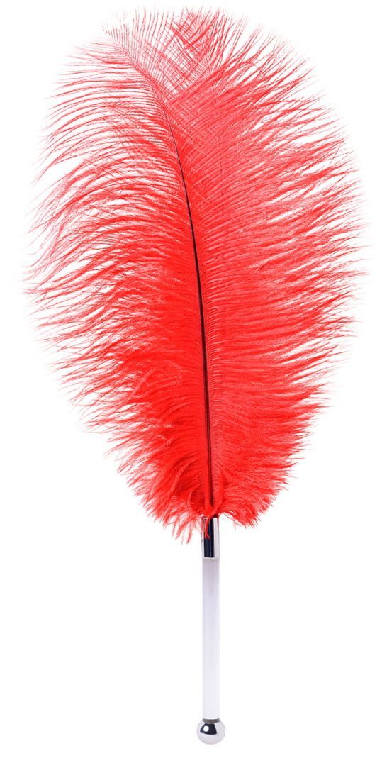 Красное страусиное пёрышко - 40 см.