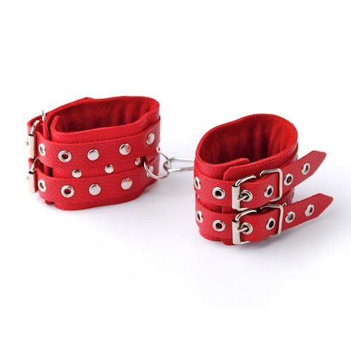 Красные кожаные наручники с ремешками