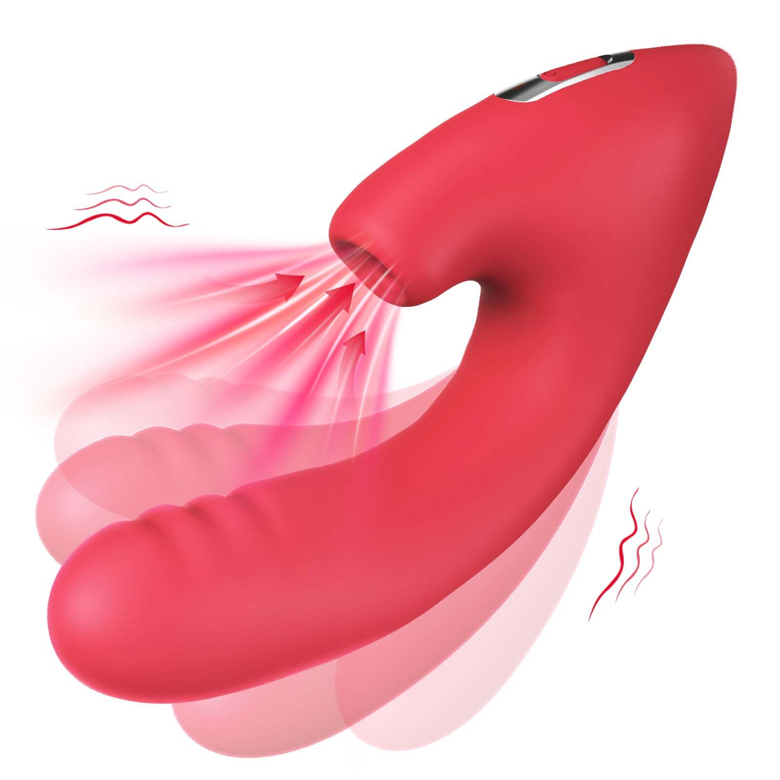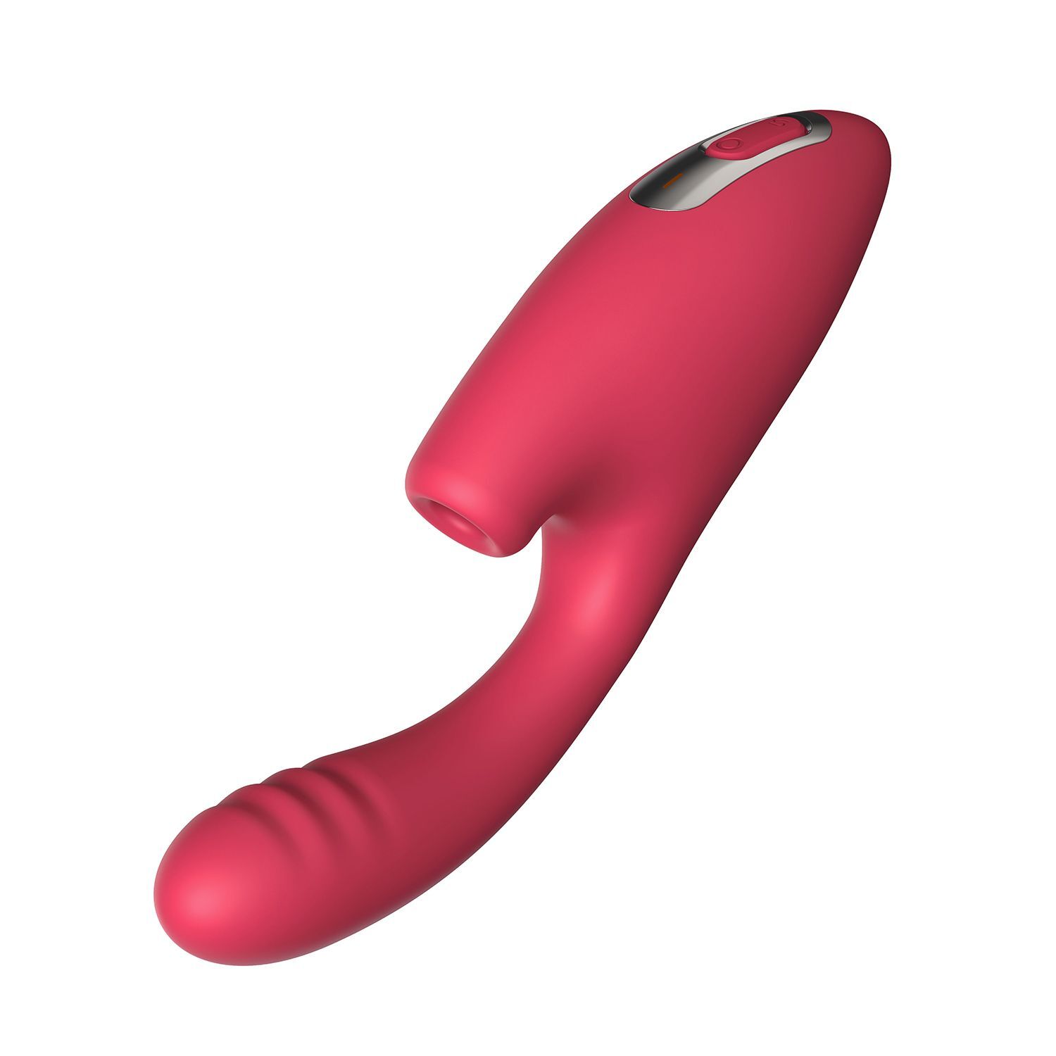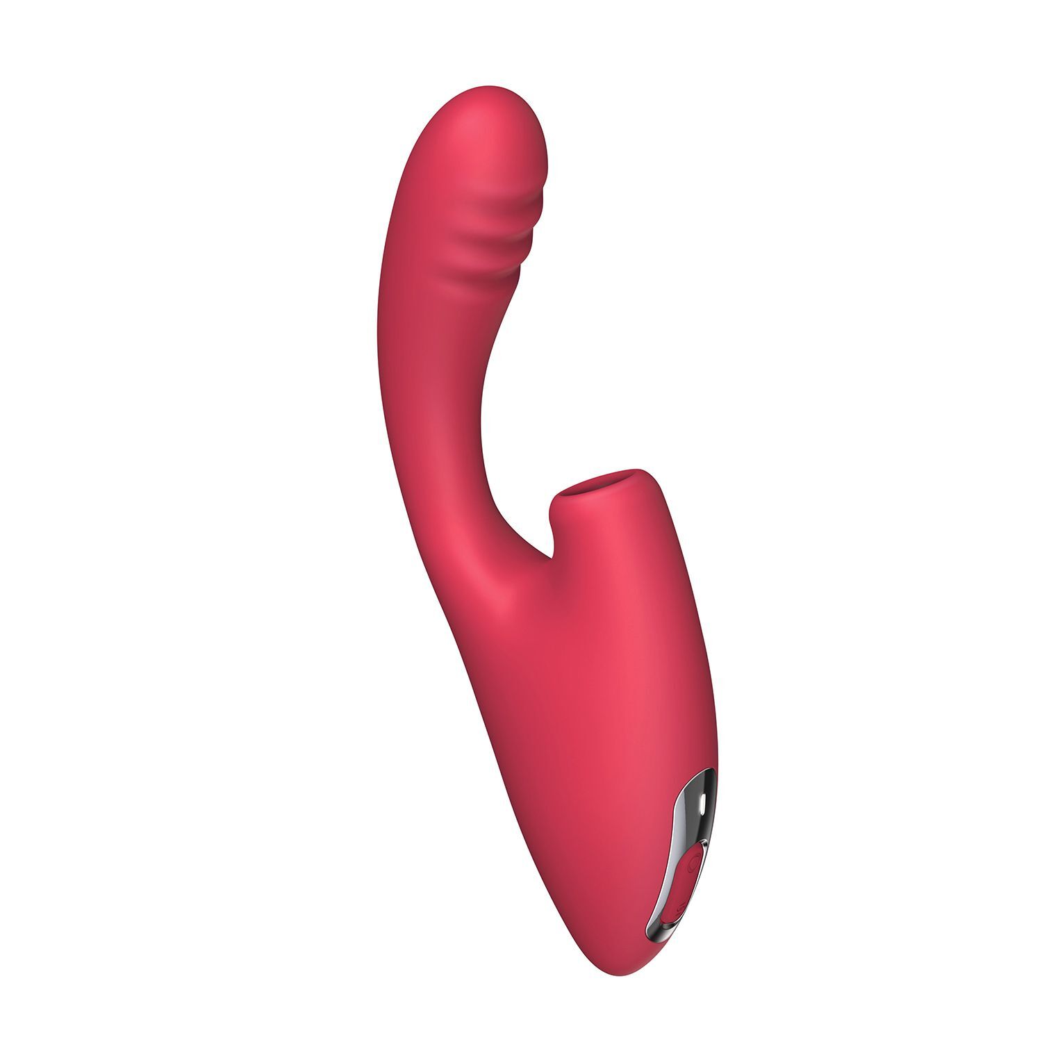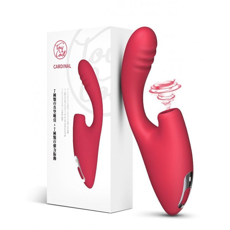 Красный двойной стимулятор Cardinal с вибрацией и вакуумом - 20,2 см.
