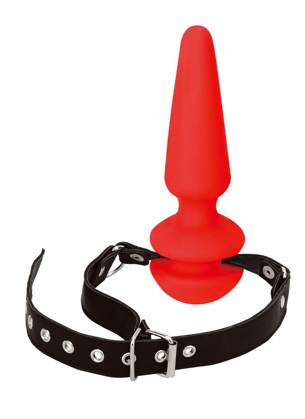Красный кляп-плаг из силикона на черных регулируемых ремешках