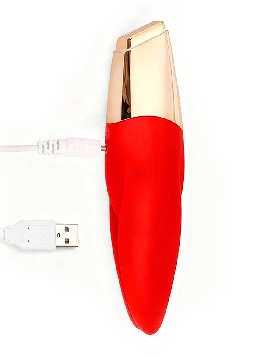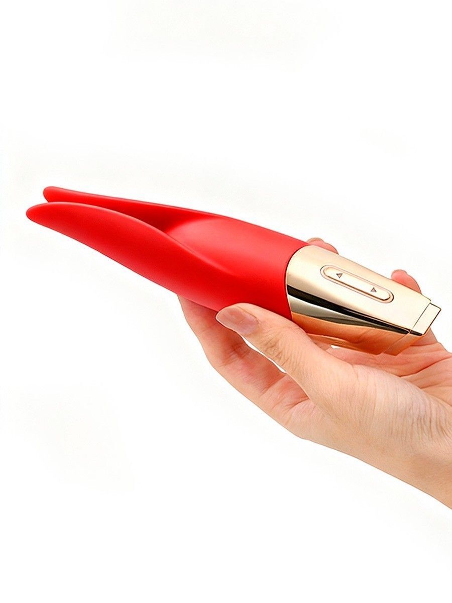 Красный мини-вибратор с раздвоенным кончиком - 12,3 см.