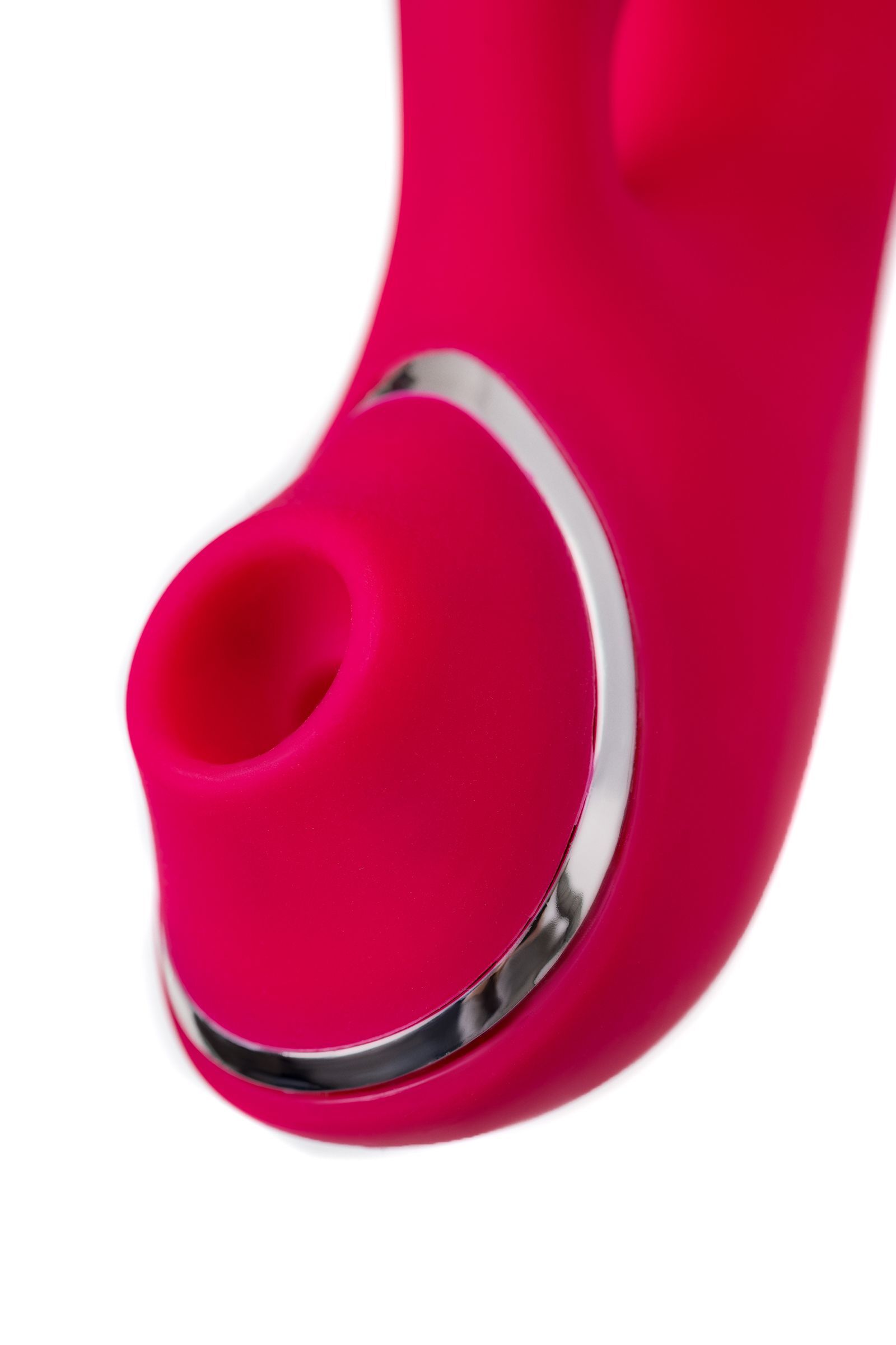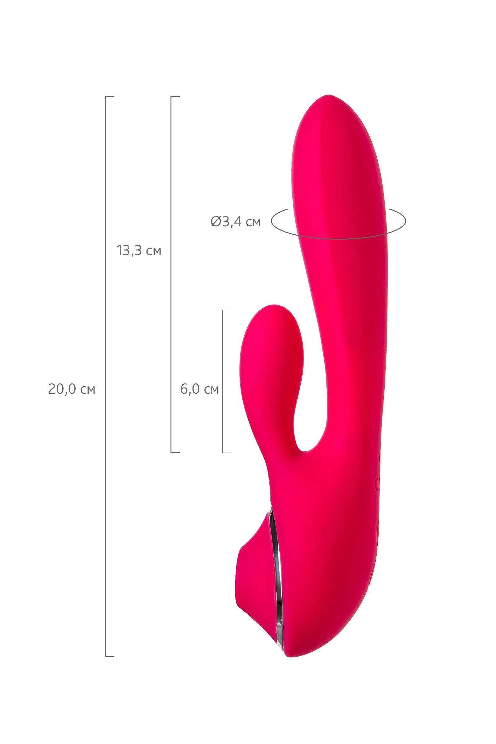 Красный вибратор c клиторальной и вакуумной стимуляциями Doobl - 20 см.