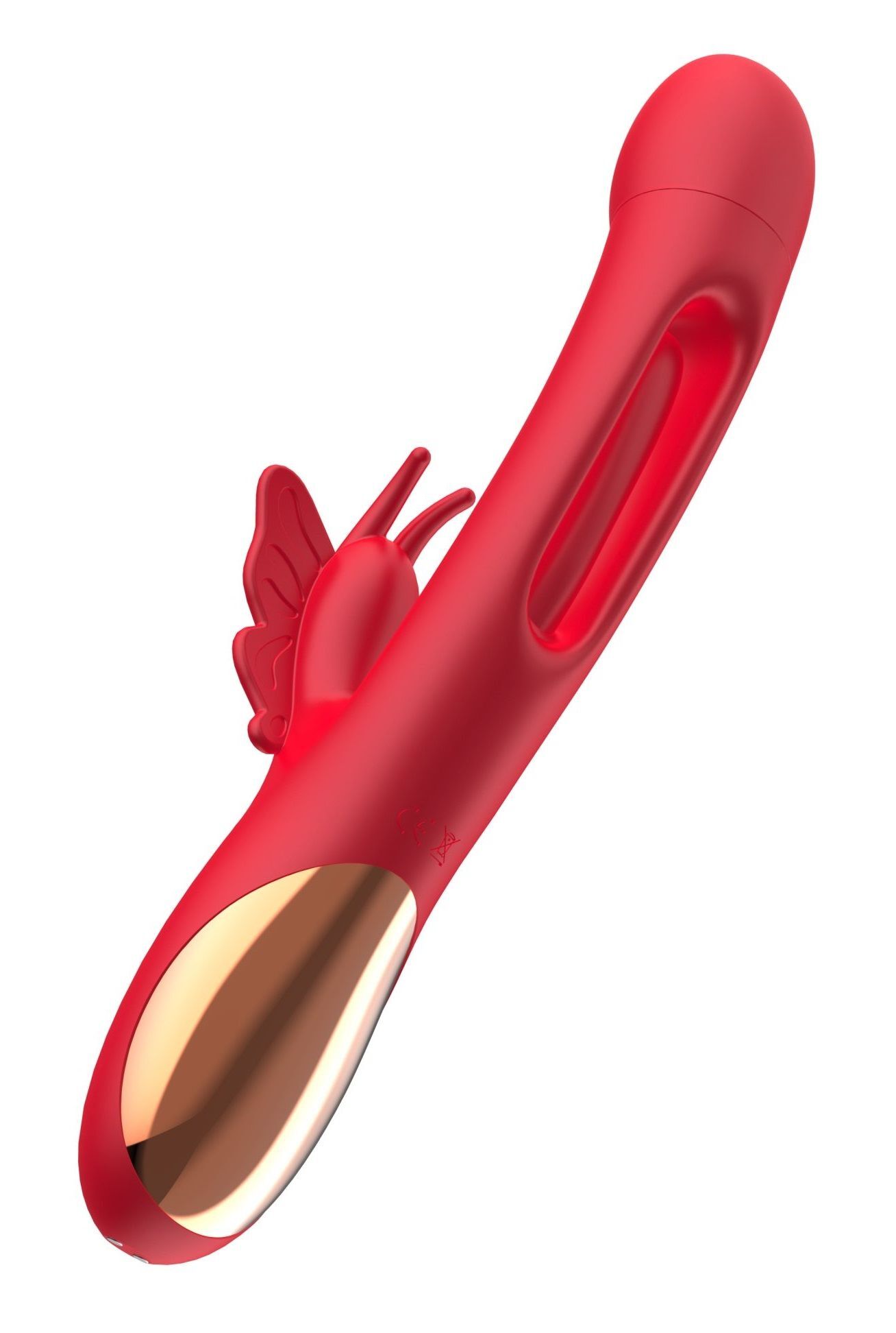 Красный вибратор-кролик с функцией фингеринга - 25,5 см.