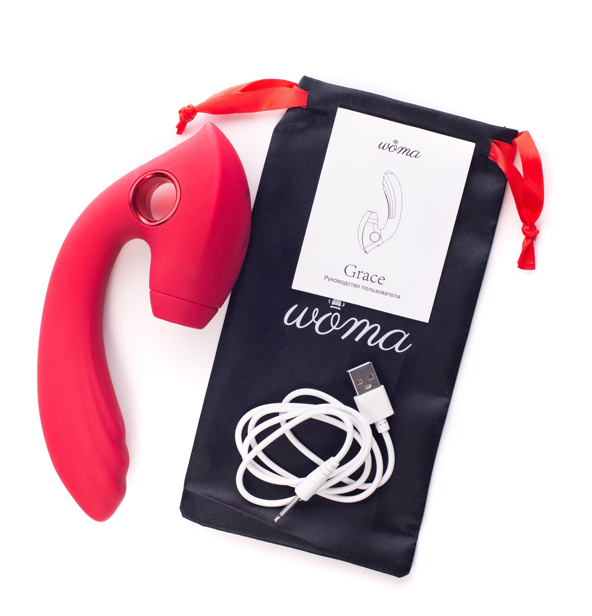 Красный вибратор с вакуум-волновым стимулятором клитора Grace