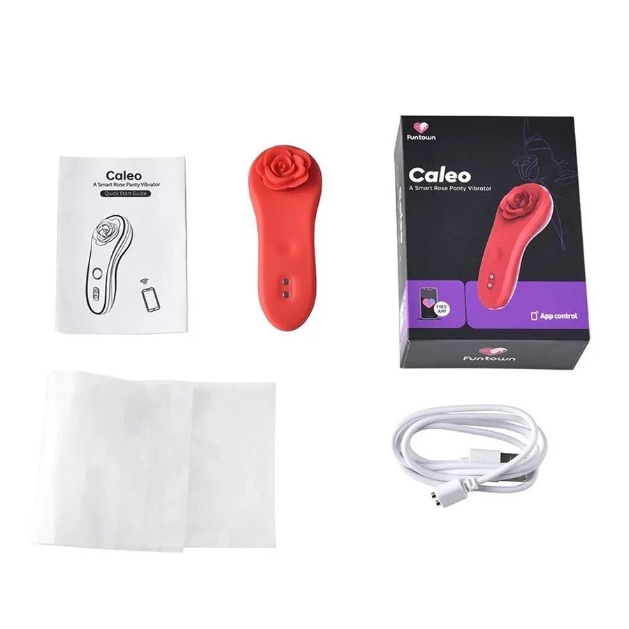 Красный вибратор в трусики Funtown Caleo с магнитным держателем-розой